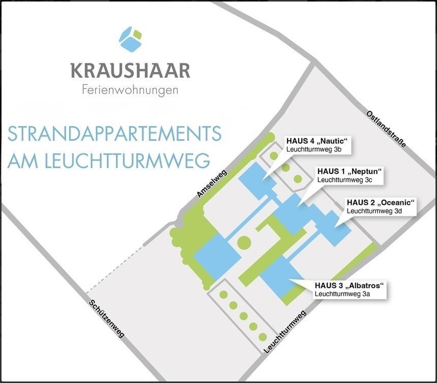 Die Schlüsselübergabe erfolgt über einen Tresor am Kraushaar Ferienwohnungen Servicebüro in der Strandstraße 3, 23746 Kellenhusen.