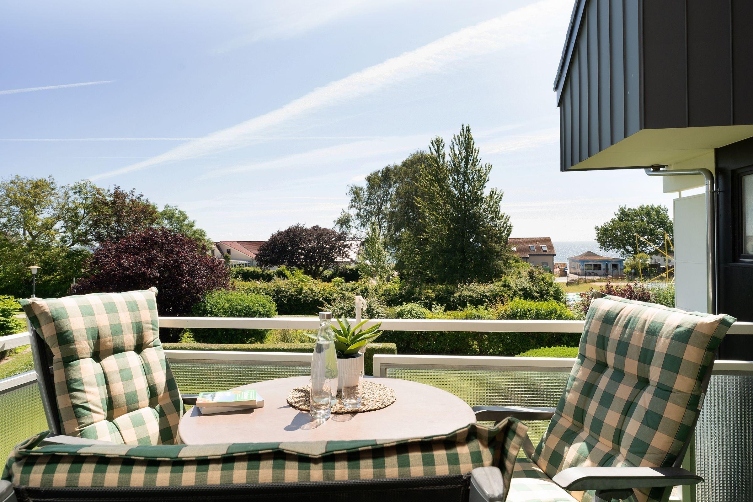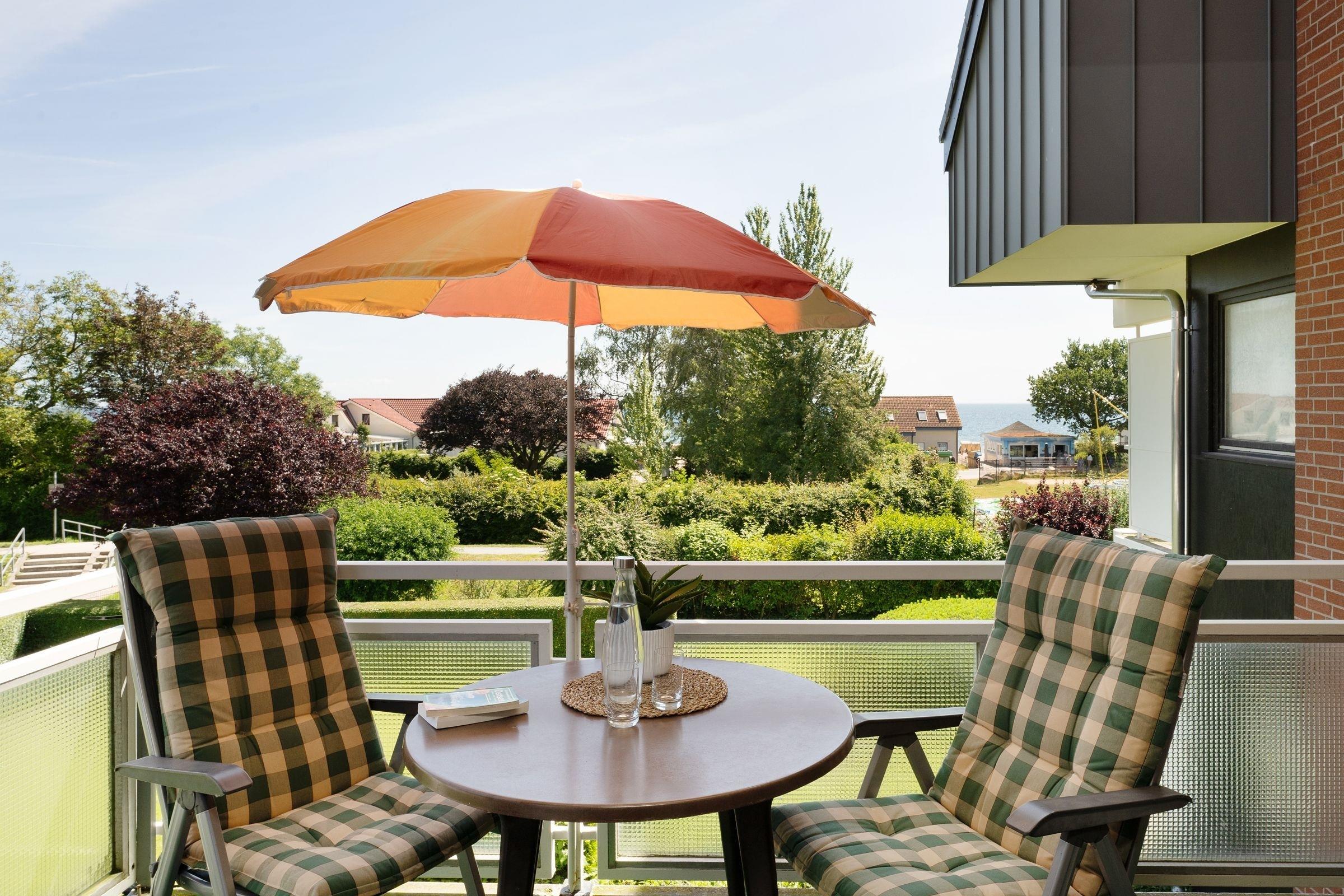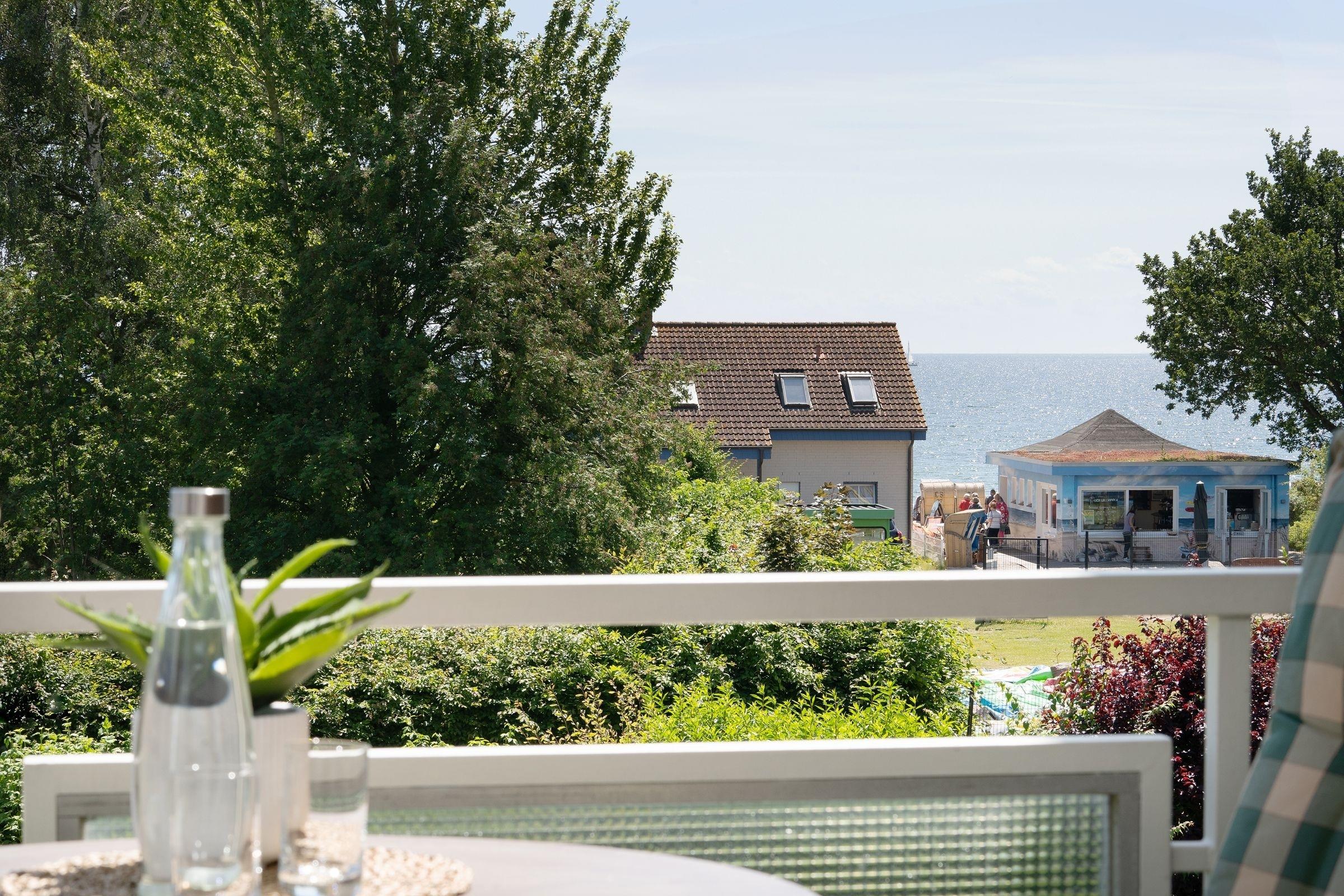 In der 1. Reihe von Kellenhusen: strandnahe, ca. 52 m² große 2-Zimmer-Ferienwohnung im 1. Stock im Haus Fernsicht mit Balkon und Meerblick für bis zu 3 Personen.