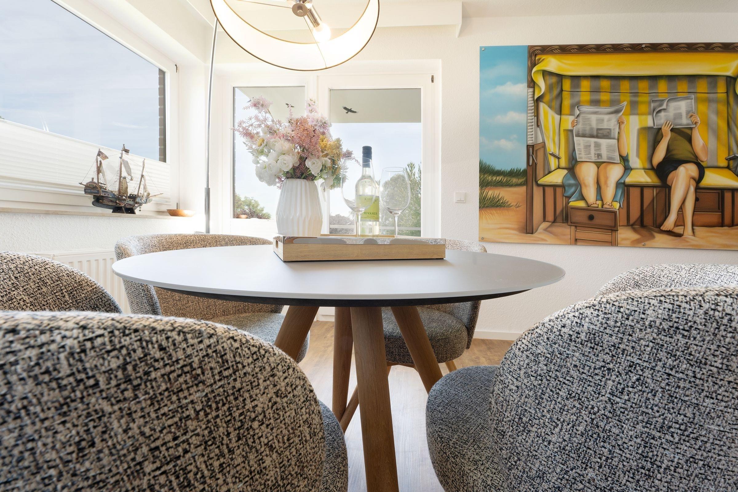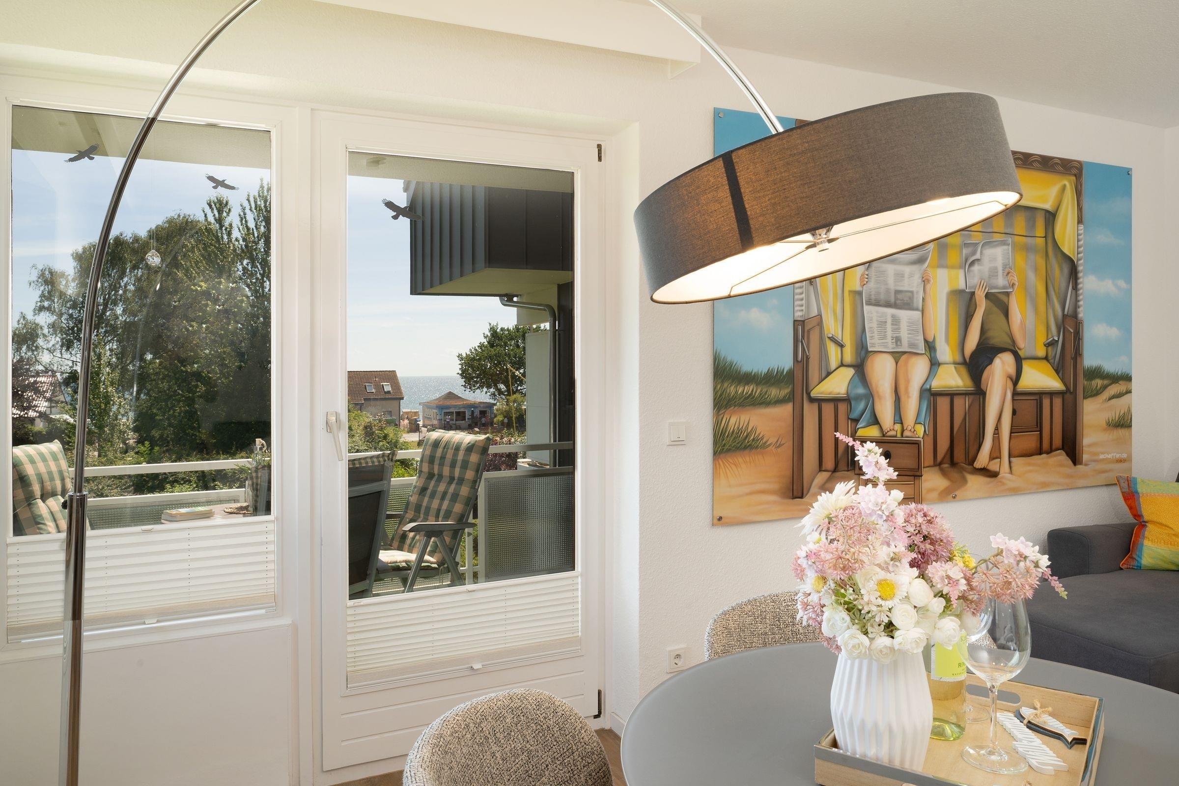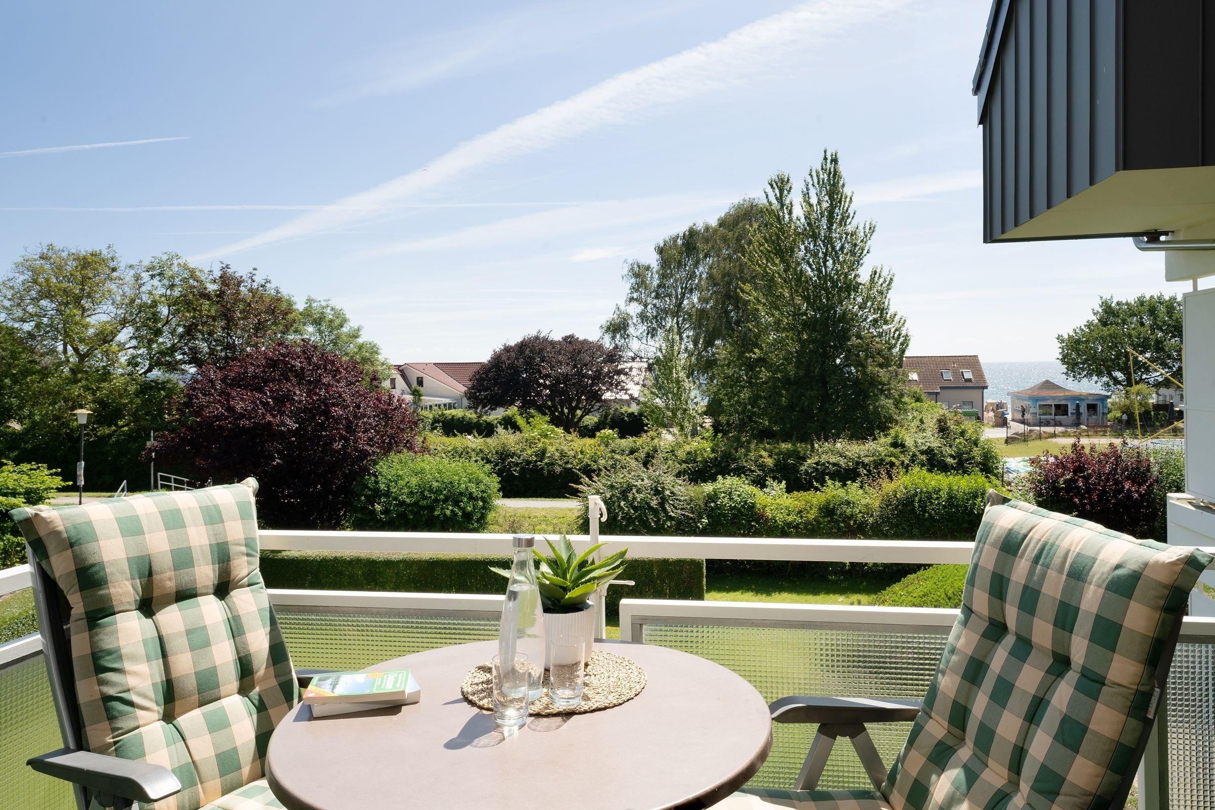 In der 1. Reihe von Kellenhusen: strandnahe, ca. 52 m² große 2-Zimmer-Ferienwohnung im 1. Stock im Haus Fernsicht mit Balkon und Meerblick für bis zu 3 Personen.