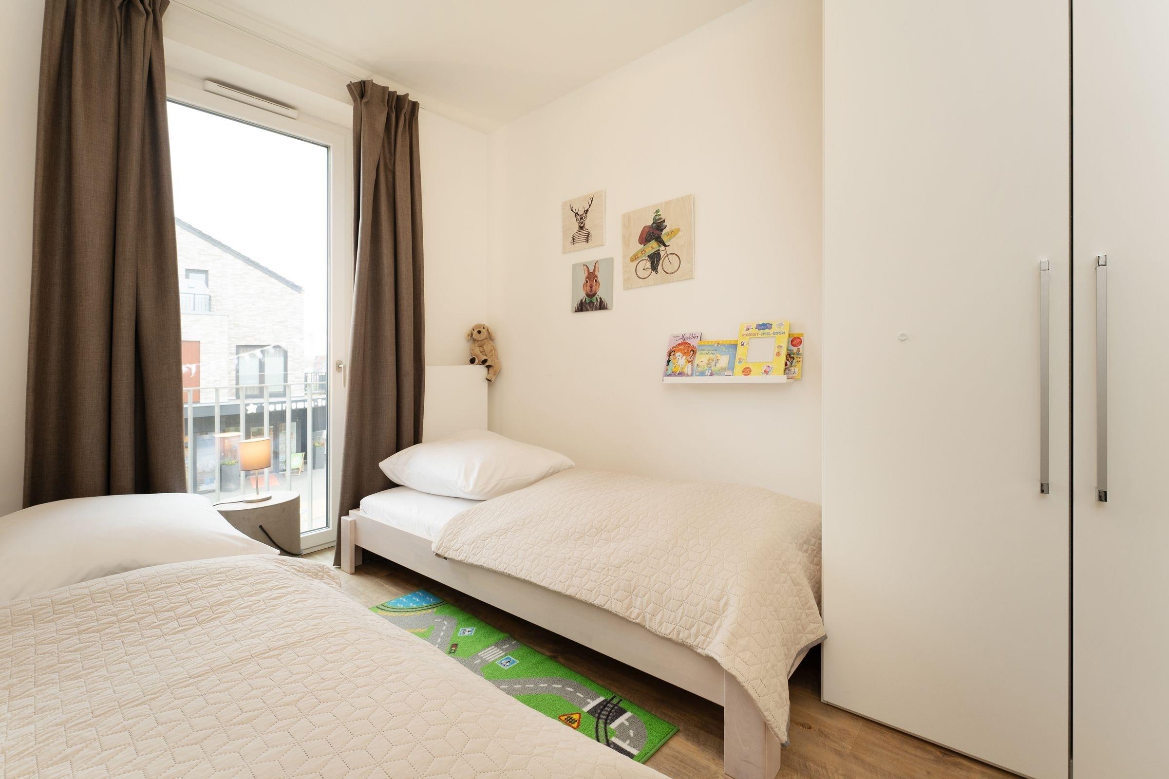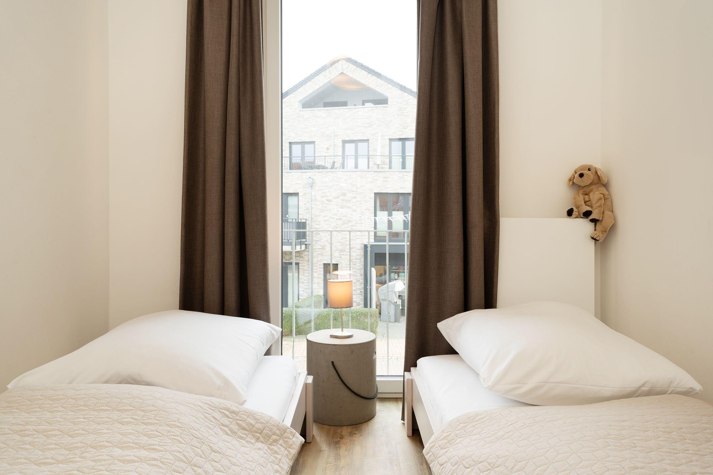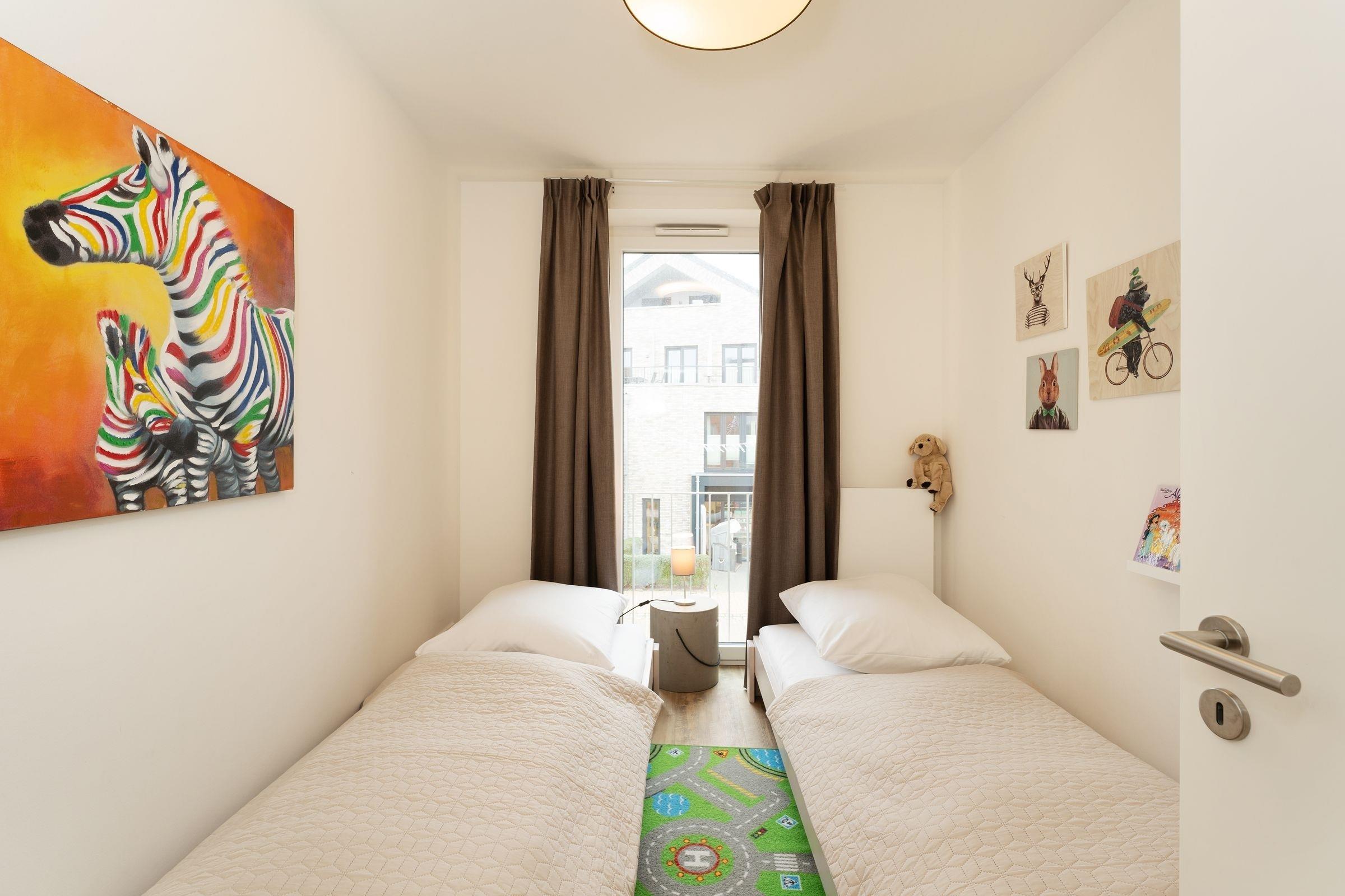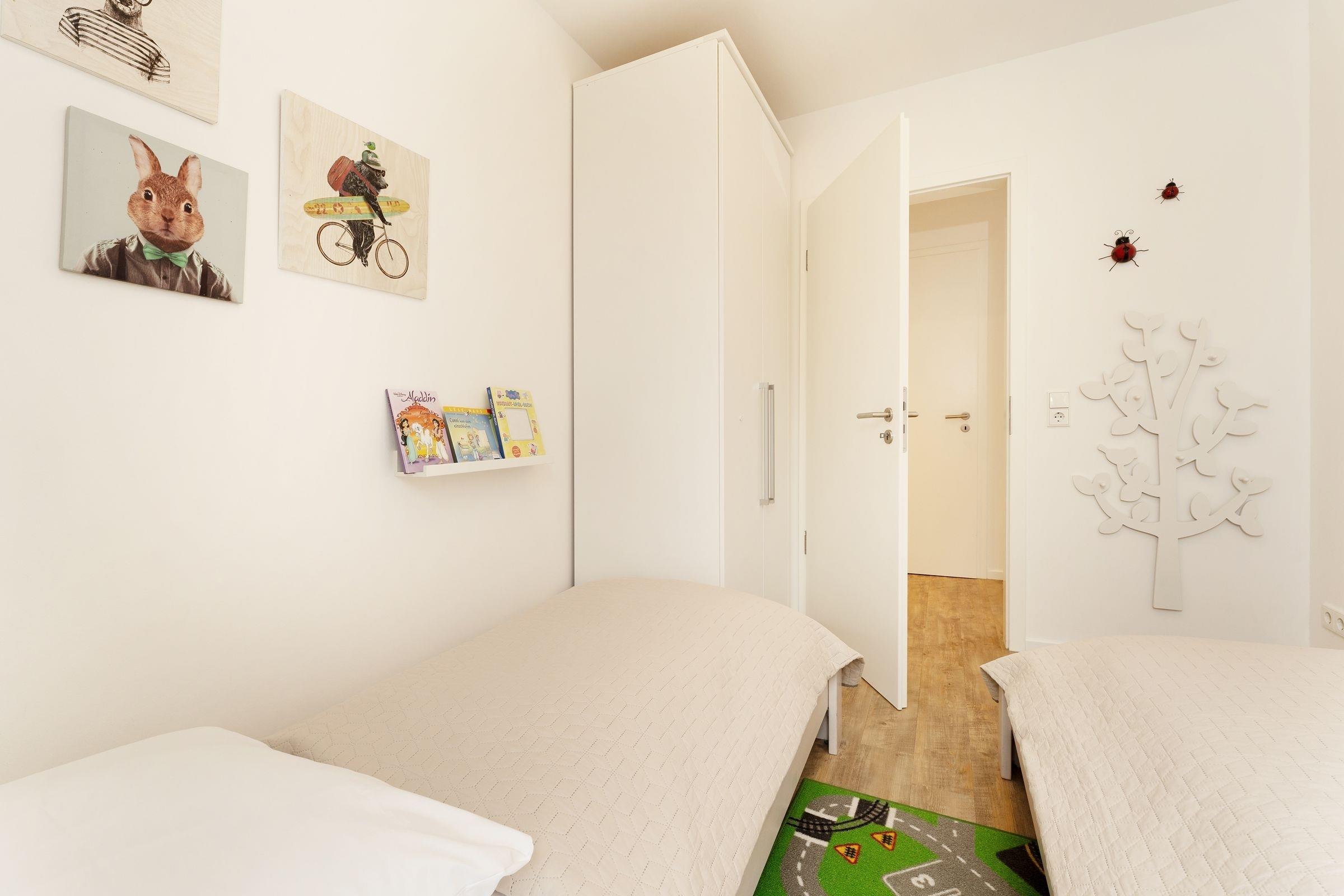 Schlafzimmer 2: 2 Einzelbetten (je ca. 90x200 cm), Kleiderschrank, Verdunkelungsgardinen