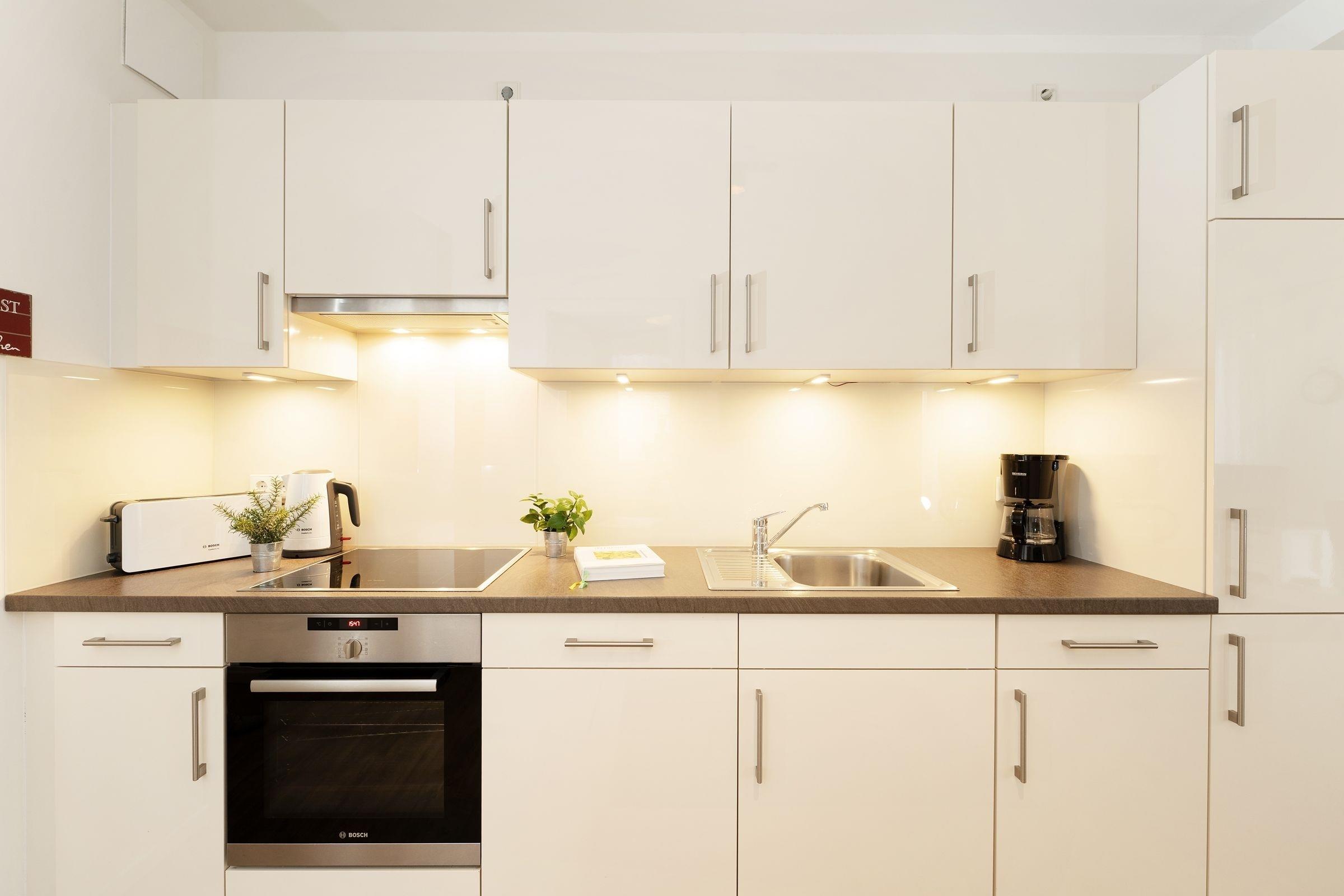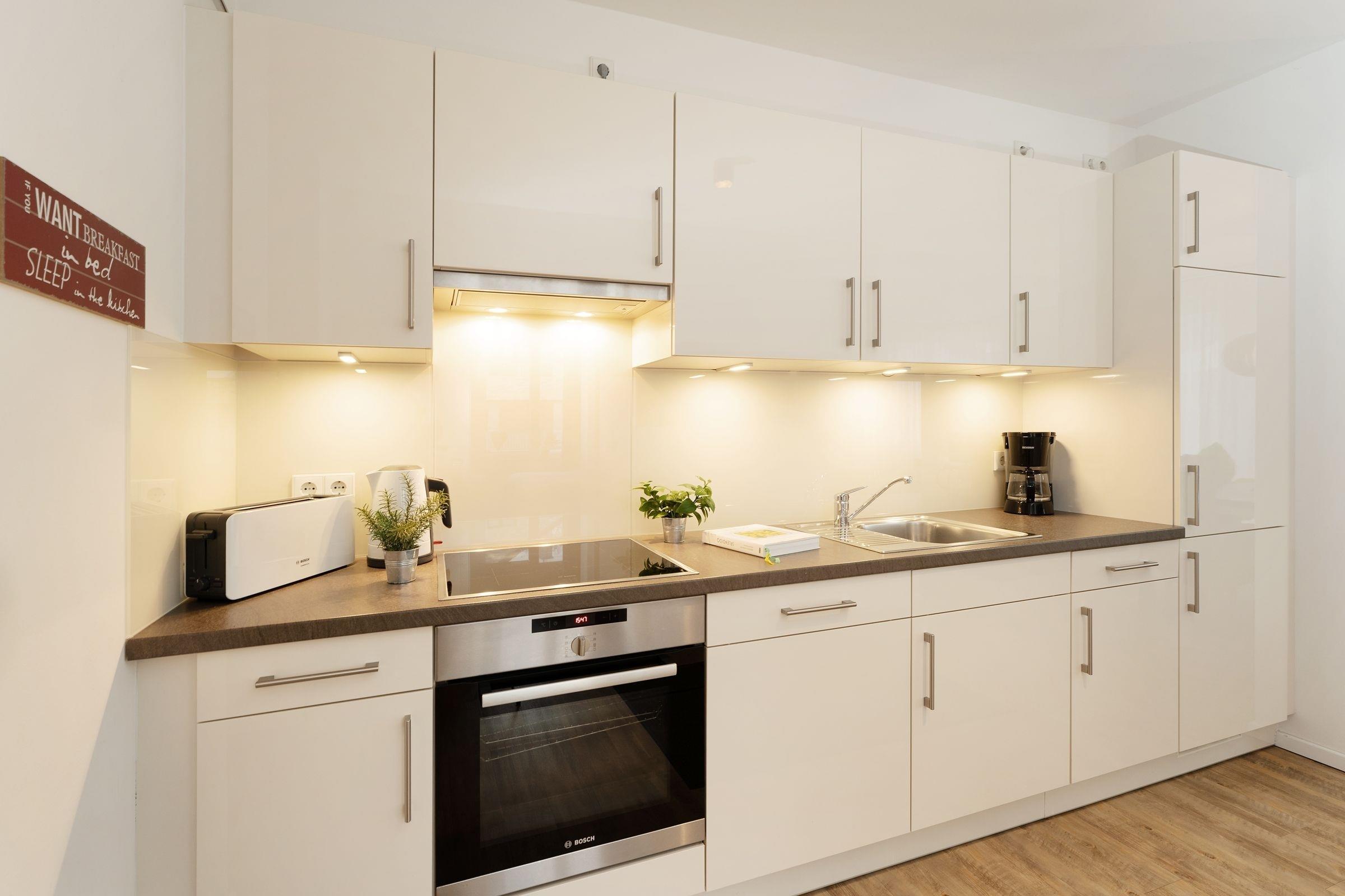 Nur wenige Schritte vom feinsandigen Strand entfernt, erwartet Sie diese liebevoll eingerichtete Ferienwohnung. Der lichtdurchflutete Wohnbereich bietet ideale Bedingungen für Entspannung nach einem Tag am Meer mit einem gemütlichen Sofa, Sessel und Flachbildfernseher. Die offene Küche ist voll ausgestattet, inklusive Elektroherd, Spülmaschine und Kaffeemaschine, sodass Sie Ihre Lieblingsgerichte bequem zubereiten oder sich an neu entdeckten regionalen Spezialitäten versuchen können. Der Essbereich lädt zu gemeinsamen Mahlzeiten ein.