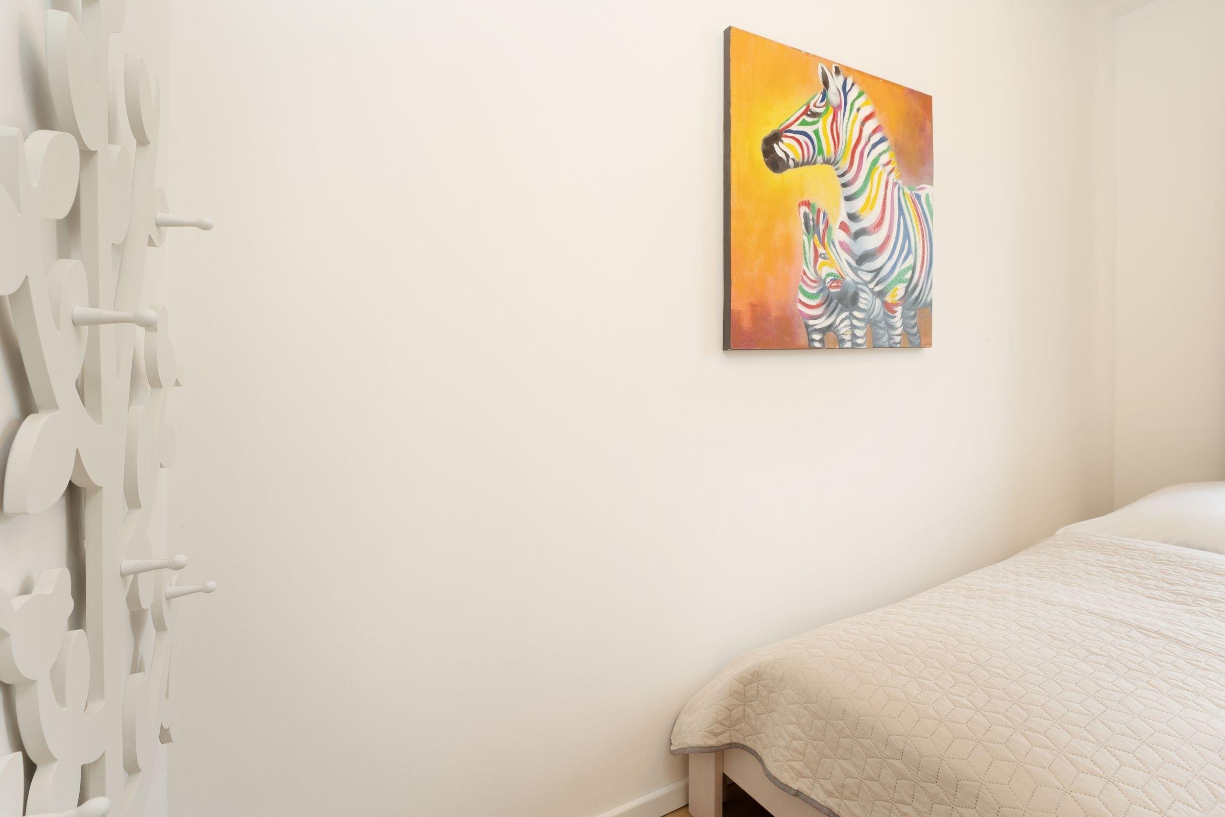 Schlafzimmer 1: 1 Boxspring-Doppelbett (180x200cm), TV, Kleiderschrank, Verdunkelungsgardinen, Platz für Babybett