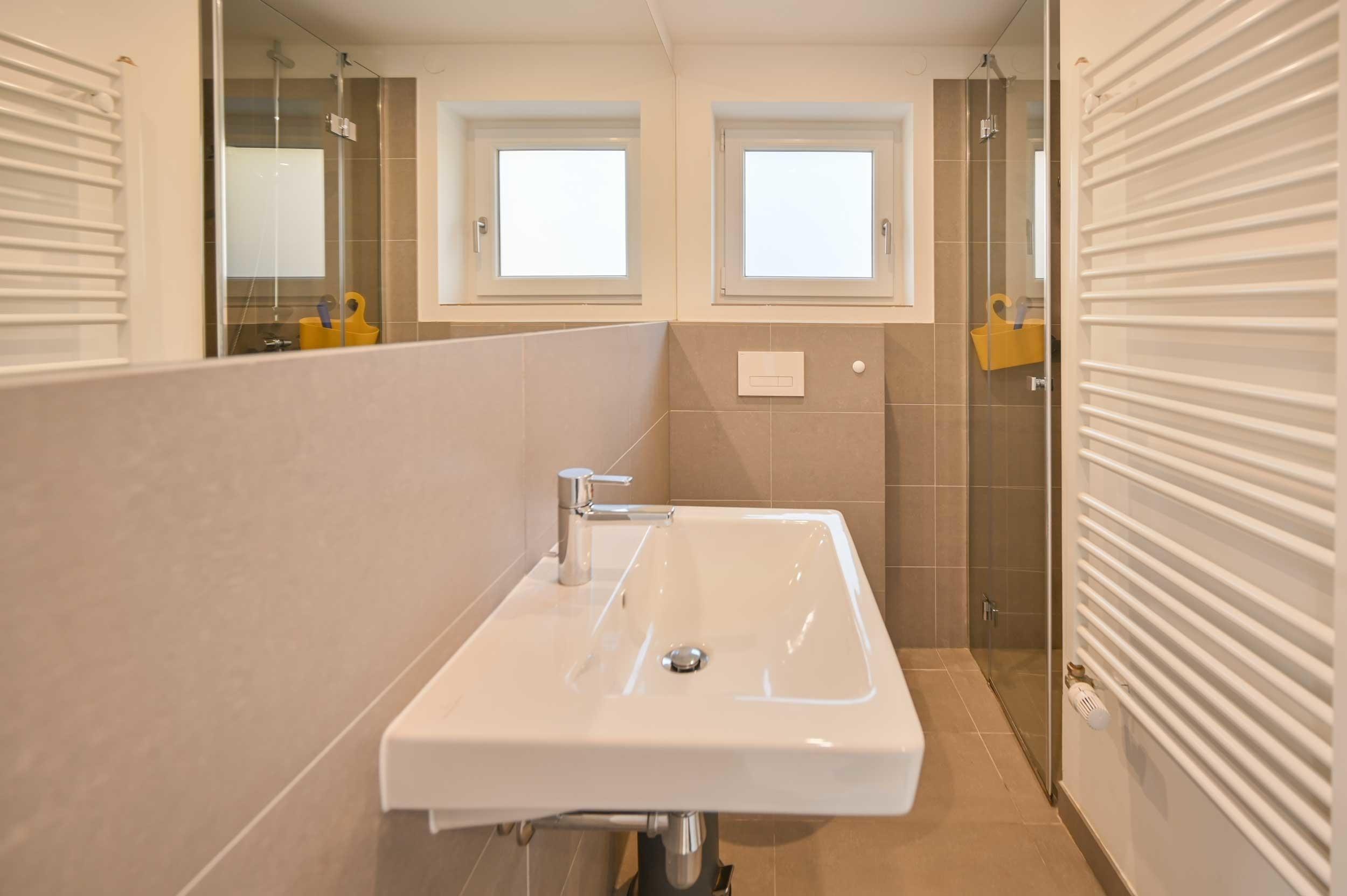 In einem Gemeinschaftsraum stehen Ihnen Waschmaschine, Wäscheständer und Bügelbrett zur Verfügung.