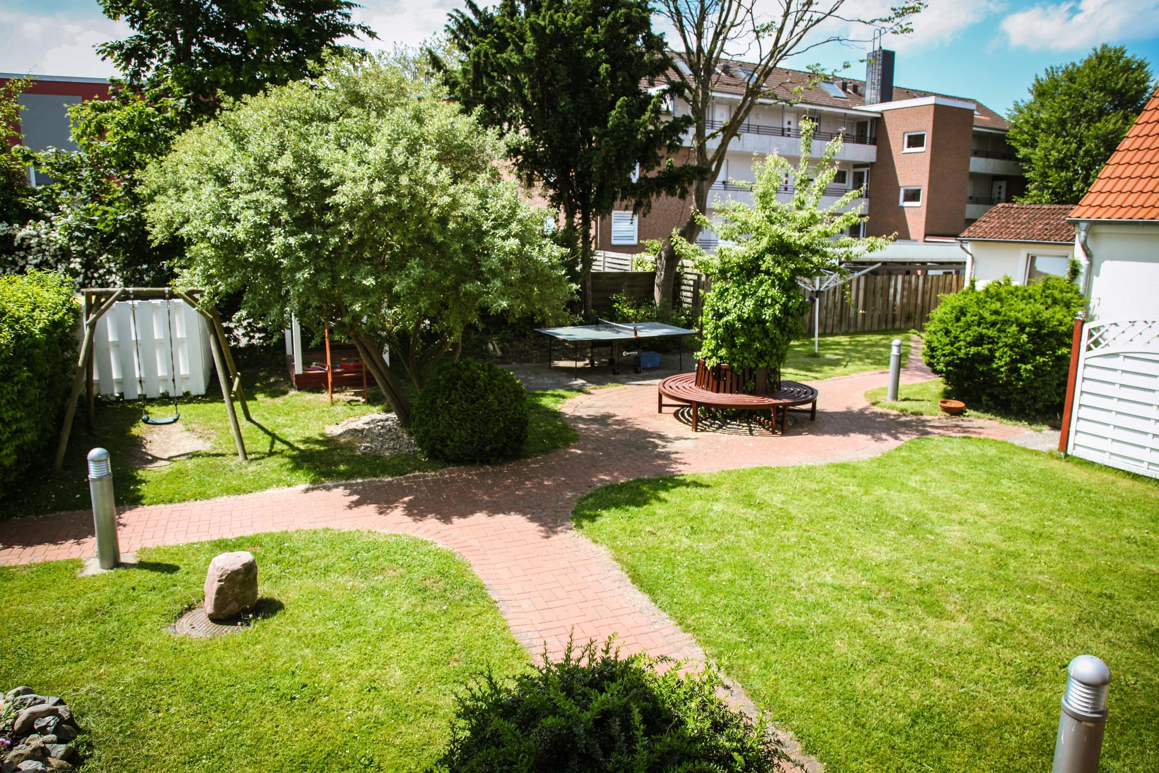 Der Garten mit Tischtennisplatte, Schaukel und Sandkiste steht allen Gästen ebenso zur Verfügung wie der Waschraum mit Waschmaschine und Trockner. Parkplatz am Haus. Zentrale Lage. Hunde erlaubt. Bettwäsche und Handtücher pro Pers./15,00€. Fahrradständer im Garten.