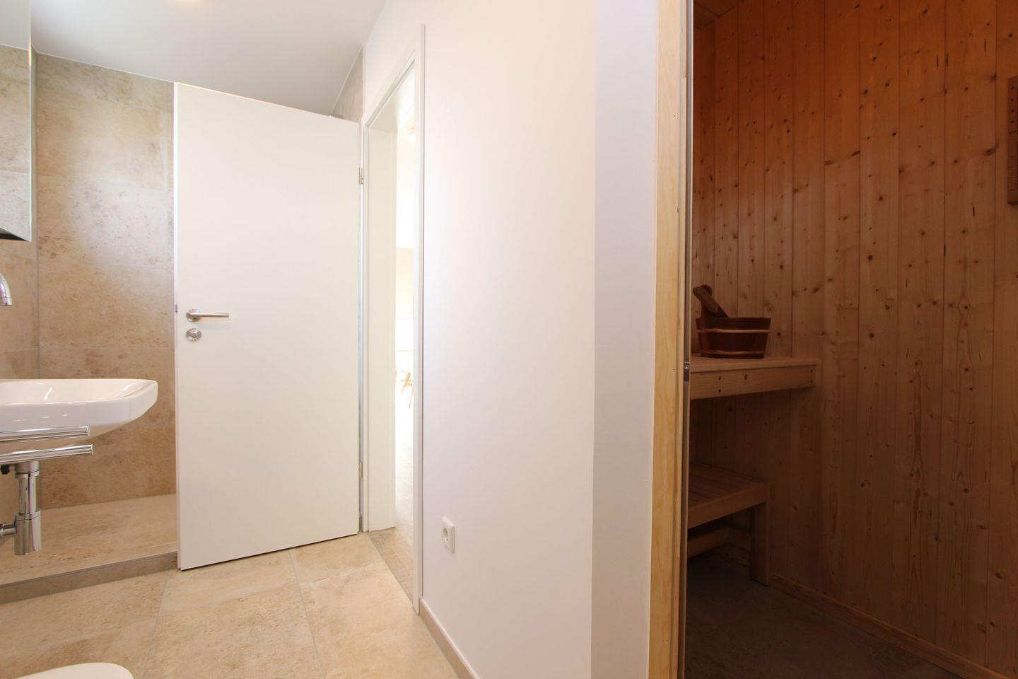Herrlich ausschlafen: Ihr Schlafzimmer ist mit einem modernen Boxspringbett (Topper 1,80x2,00m) möbliert, damit Sie sich im Urlaub gut erholen können. Auch das Bad ist komfortabel ausgestattet: Neben der Dusche dürfen Sie gern auch in der eingebauten Sauna entspannen. Eine Waschmaschine steht für die Wäsche zwischendurch bereit.