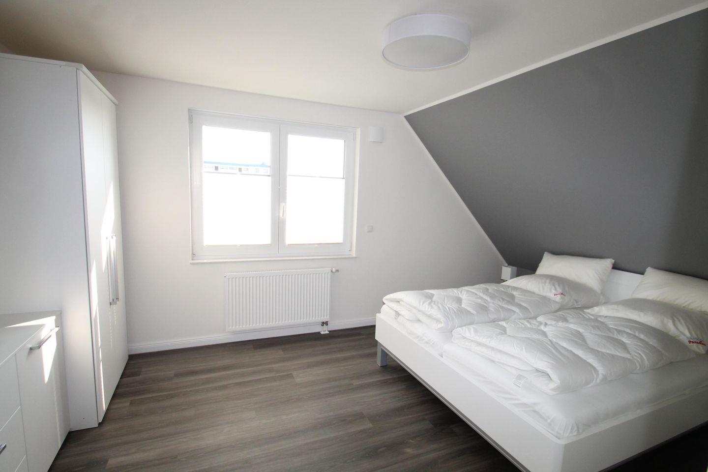 Moin, Moin und Herzlich Willkommen... Schöne Doppelhaushälfte in einer bevorzugten Wohnlage nahe dem Meer. Sie finden hier Platz für bis zu 8 Personen, mit viel Wohnqualität, komfortabel und stilsicher eingerichtet. Dieses Hausteil bietet für alle Jahreszeiten einen idealen Urlaubsrahmen. Die Wohnfläche (zirka 130 m²) verteilt sich wie folgt: Parterre: Entrée, Technikraum mit Waschmaschine und Trockner, Abstellraum, Duschbad, Wohnzimmer mit offener Küche und direktem Zugang zum Garten und zur Ostterrasse. Im OG befindet sich das schöne Vollbad. Schlafzimmer (1) mit Doppelbett (90x200 cm Matratzen) + TV, Schlafzimmer (2) mit Doppelbett (90x200 cm Matratzen), Schlafzimmer (3) mit Doppelbett (80x200 cm Matratzen) + TV, Schlafzimmer (4) im DG mit zwei Einzelbetten (90x200 cm Matratzen). Rollläden, W-LAN und 2 PKW-Stellplätze ergänzen die Komfortausstattung des Hauses. Und... vom Schlafzimmer im OG Teilmeerblick! Beide Doppelhaushälften sind gemeinsam eingezäunt. Zwei liebe Hunde sind herzlich willkommen.