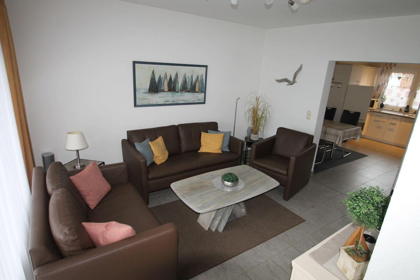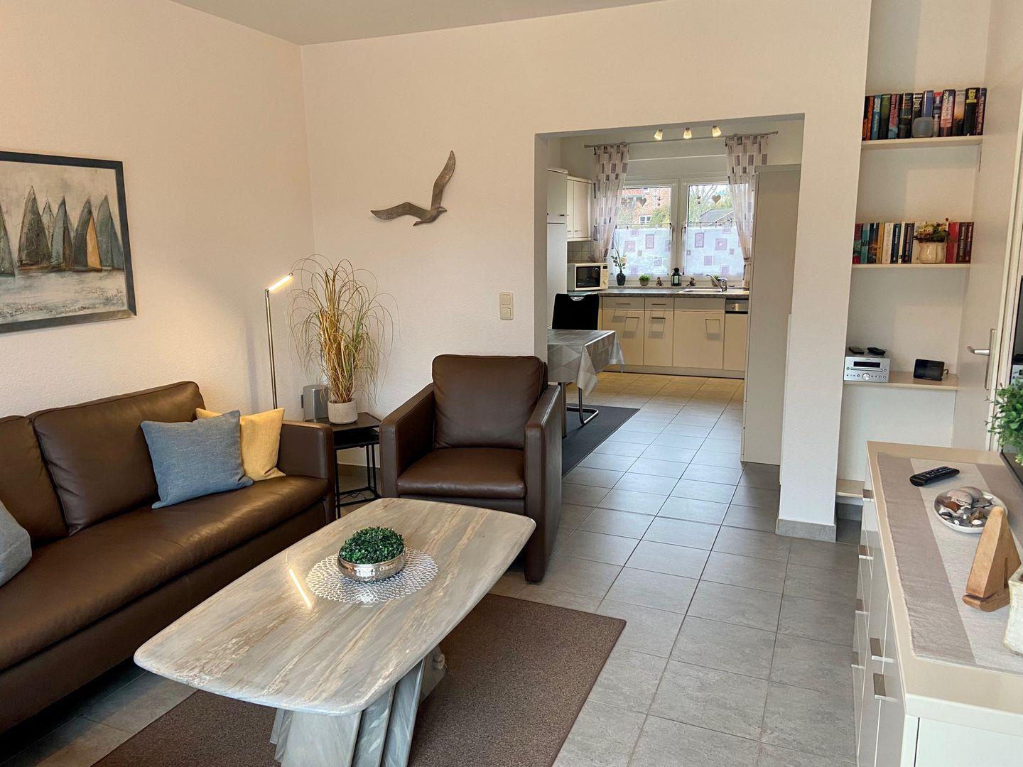Sehr schönes Reihenhaus in ruhiger Wohnlage mit sonniger Südwestterrasse und Gartenanteil. Dieses Ferienhaus mit ca. 70 m² Wohnfläche bietet bis zu fünf Personen ausreichend Platz. Im Erdgeschoss befindet sich neben dem Wohnzimmer mit Zugang zur sonnigen Südwestterrasse die technisch gut ausgestattete Küche, sowie ein Badezimmer mit Dusche und WC. Im Obergeschoss des Hauses befinden sich zwei Schlafzimmer - einmal mit Doppelbett und zum anderen mit zwei Einzelbetten, sowie einem massiven Schrankbett für eine mögliche 5 Person und ein Vollbad. Als weitere Extras sind zu nennen ein Wasch-Trockner in einer separaten Abstellkammer, ein eigener PKW-Stellplatz und natürlich der schöne kleine und sonnige Garten, der Sie auf der Terrasse durch hohe Hecken vor neugierigen Blicken schützt. Über einen direkten Fußweg kommen Sie bequem in zirka fünf Minuten zum Strand.