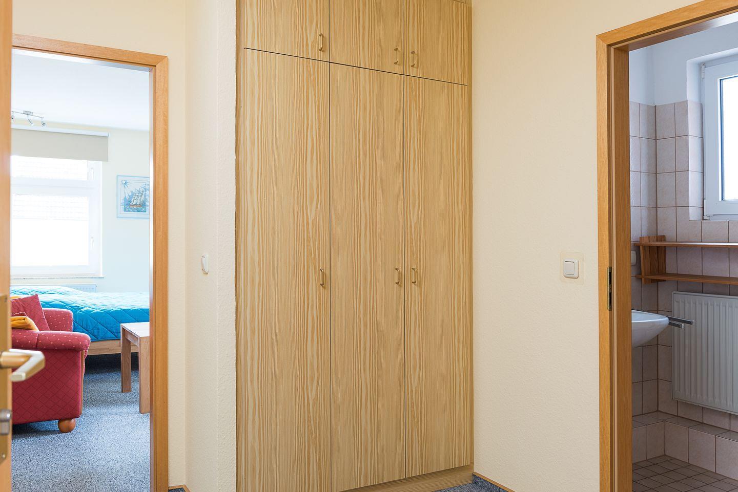 Diese kleine 28 m² große Ferienwohnung für 2 Gäste liegt im Obergeschoss der STRAND-ZEIT und ist nur 330 m vom Strand entfernt.