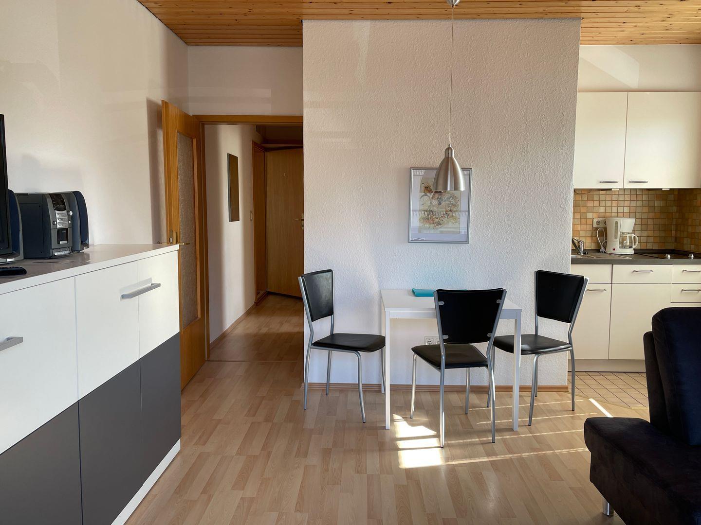 Drei Personen finden in dieser Wohnung Platz. Das separate Schlafzimmer hat ein Doppelbett. Das Wohnzimmer ist behaglich gestaltet, um eine einladende Atmosphäre für erholsame Urlaubsmomente zu bieten. Zusätzlich verfügt der Raum über ein praktisches Schrankbett, das einen weiteren Schlafplatz für eine zusätzliche Person bereitstellt. Eine Küchennische mit Geschirrspüler sowie ein Duschbad befinden sich weiterhin in der Wohnung. Der schöne Grillplatz mit Liegewiese zur gemeinschaftlichen Nutzung verspricht entspannte Stunden.