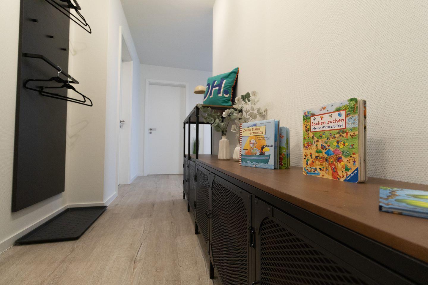Ein Aufzug bringt dich bequem von der Tiefgarage (Durchfahrtshöhe 2,15m) direkt vor deine Wohnungstür. Für Fahrräder oder Sportequipment gibt es einen abschließbaren Abstellraum. Der kontaktlose Check-in über Schlüsseltresor bietet dir maximale Flexibilität bei der Anreise. Dein Hund ist nach Anmeldung ebenfalls herzlich willkommen!