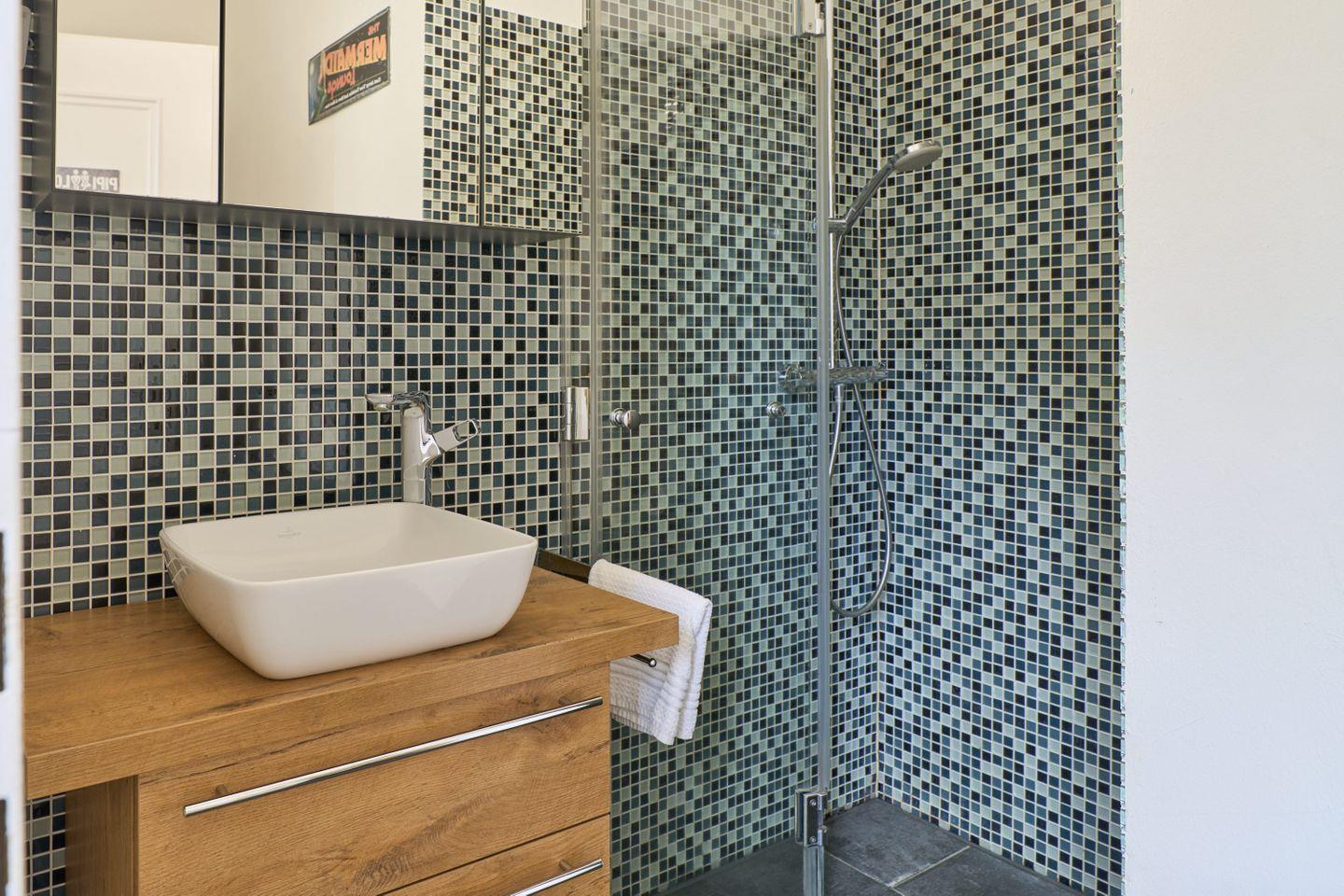 Das Ferienhaus verfügt über insgesamt drei Zimmer, darunter zwei gemütliche Schlafzimmer, die Ihnen eine ruhige Nachtruhe garantieren. Das Hauptschlafzimmer ist hell und einladend, während das zweite Schlafzimmer bequem für weitere Gäste oder Kinder ausgestattet ist. Das Badezimmer ist modern gestaltet und verfügt über eine Dusche sowie ein Waschbecken. Darüber hinaus ist ein WC vorhanden.