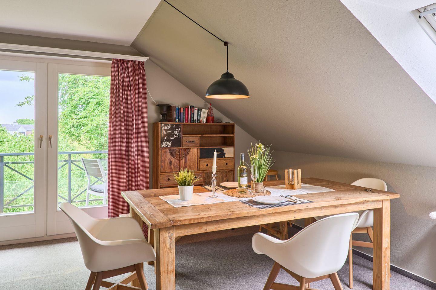In der Wohnung selbst erwartet Sie eine moderne und offene Küche, die harmonisch in den Wohnbereich integriert ist. Diese ist mit einem Cerankochfeld, Backofen, Mikrowelle, Kühlschrank und einer Spülmaschine ausgestattet, sodass Sie beim Zubereiten Ihrer Mahlzeiten keine Wünsche offenlassen. Ergänzt wird die Küche durch eine umfassende Ausstattung mit Geschirr, Besteck und Küchenutensilien sowie einer praktischen Kaffeemaschine und einem Wasserkocher.