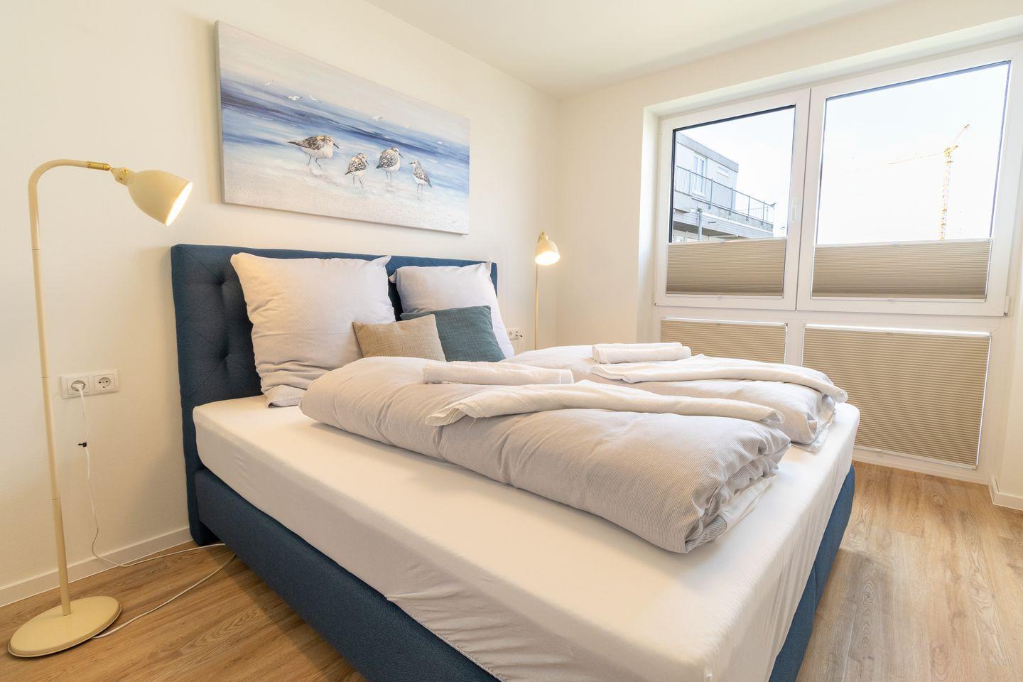Zwei Schlafzimmer mit hochwertigen Boxspringbetten (unterschiedliche Härtegrade 2 und 3) bieten besten Schlafkomfort. Beide Räume sind stilvoll eingerichtet und eignen sich sowohl für Paare als auch für Familien mit Kindern.