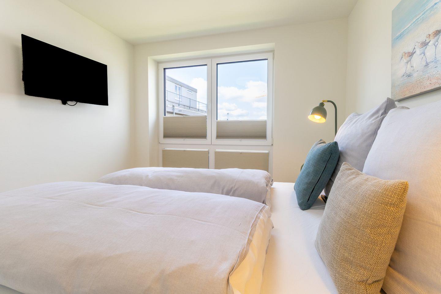 Nur 100?m vom Strand entfernt erwartet dich die moderne Ferienwohnung Slow Down mit privater Sauna, Loggia, zwei Schlafzimmern mit Boxspringbetten und kostenlosem Strandkorb in der Hauptsaison. Ideal für Familien, Paare oder Freunde, die Komfort und Erholung suchen.
