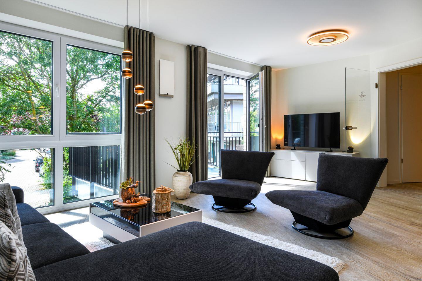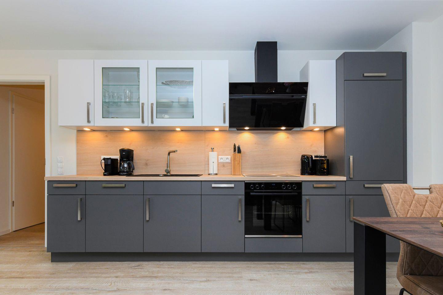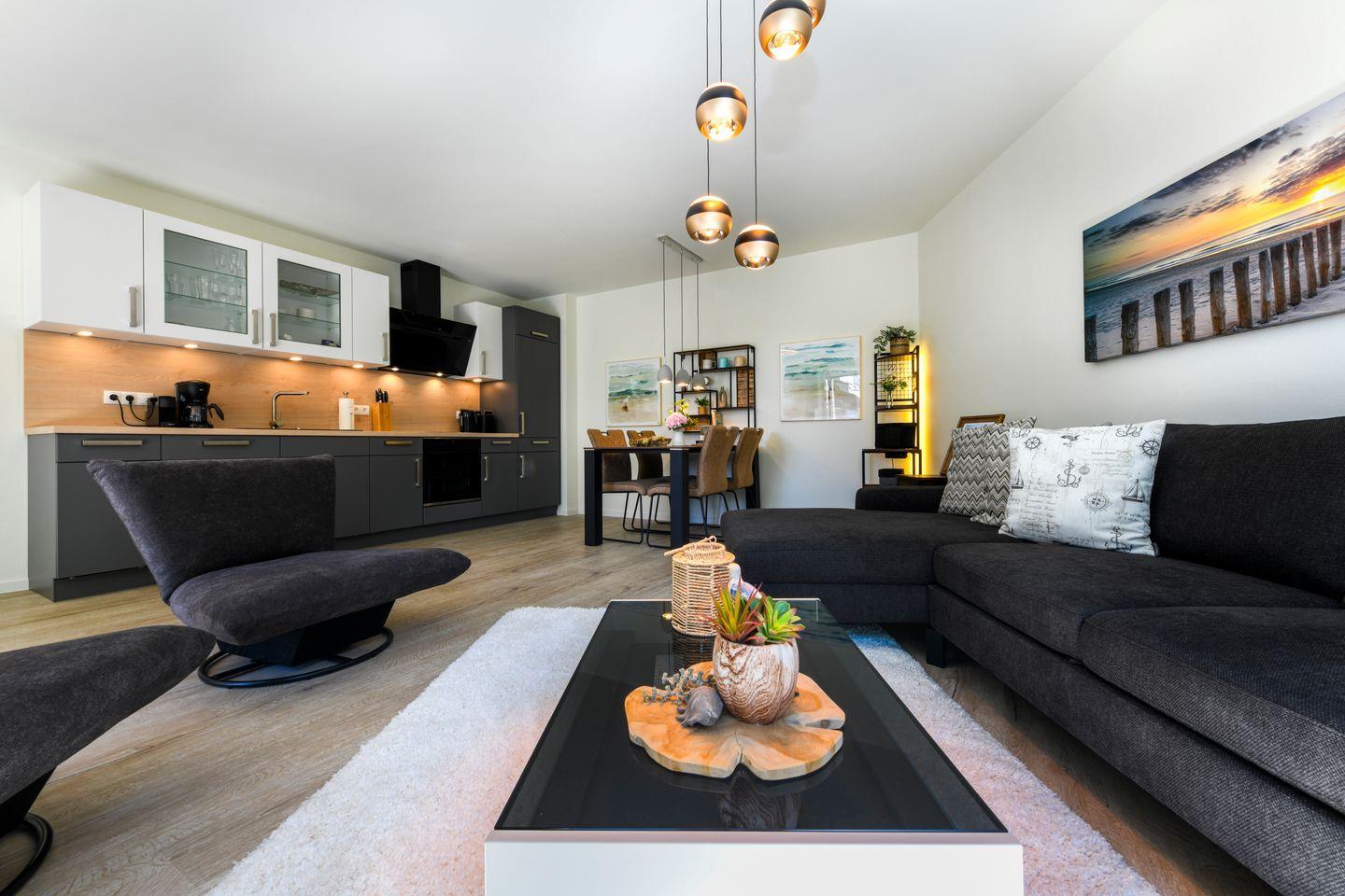 Helle Räume, bodentiefe Fenster und eine moderne Einrichtung sorgen für ein angenehmes Wohngefühl. Die offene Küche ist mit allem ausgestattet – direkt daneben lädt der Esstisch zu gemeinsamen Mahlzeiten ein. Auf dem Balkon in sonniger Südlage kannst du die Ostseeluft wunderbar genießen – ob beim Frühstück oder beim Ausklang des Tages.