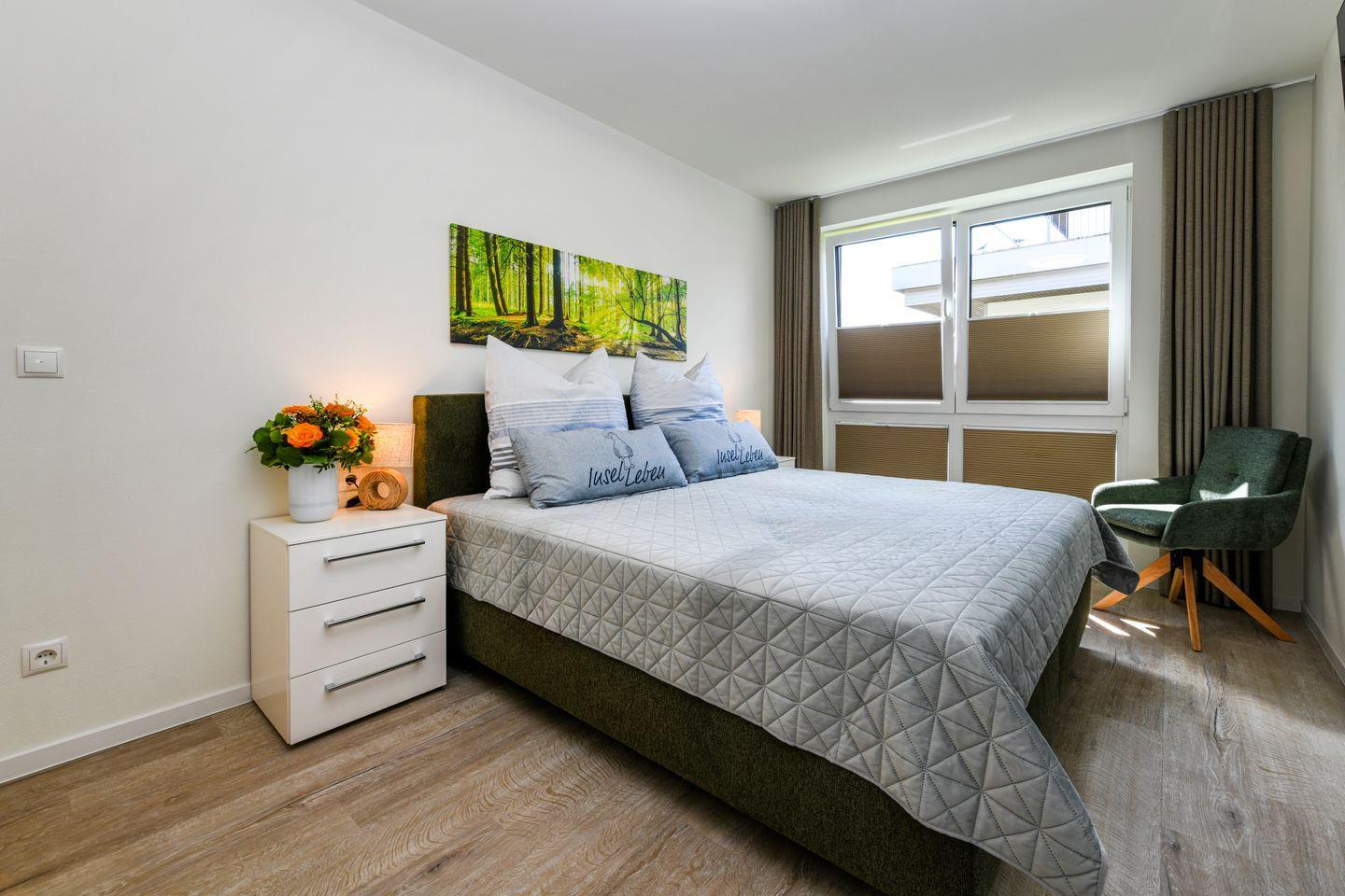 Nur 100?m vom Strand entfernt bietet dir die Ferienwohnung Wellenzauber modernes Design, ein Schlafzimmer, Sauna, sonnigen Balkon und ein bequemes Schlafsofa. Ideal für bis zu 3 Gäste und ein Baby/Kleinkind – mit Aufzug, Tiefgarage.