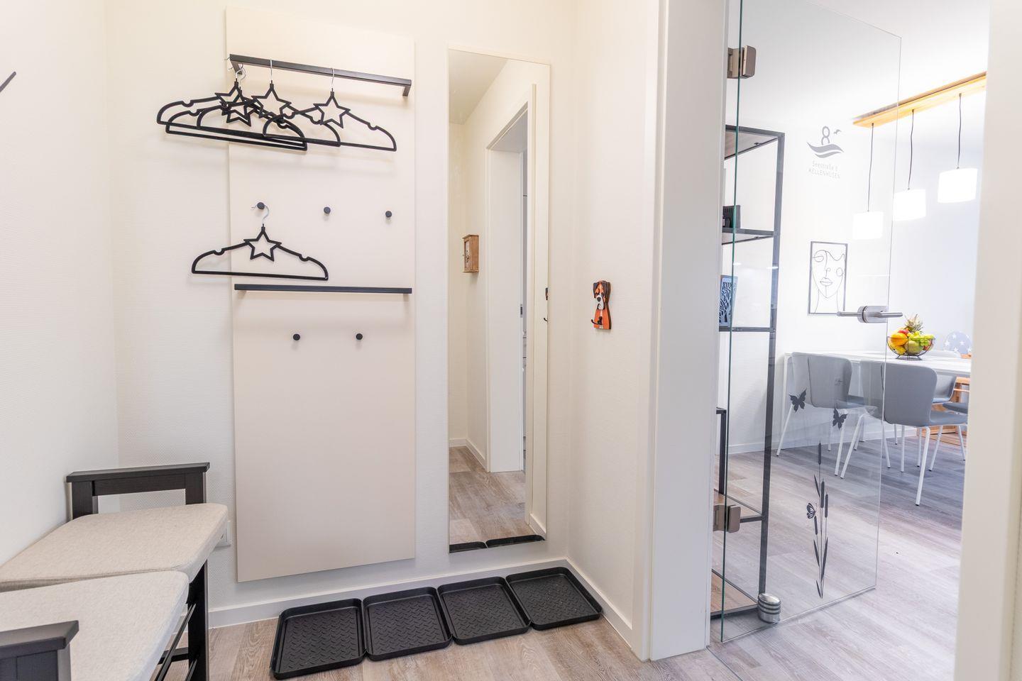 Ein moderner Tiefgaragenstellplatz (Durchfahrtshöhe 2,15 m) ist im Preis inklusive. Vor dem Haus findest du eine E-Ladestation für dein Elektroauto. Für Fahrräder steht ein abschließbarer Fahrradraum zur Verfügung. Der kontaktlose Check-in über Schlüsseltresor sorgt für eine flexible und bequeme Anreise. Zusatzleistungen wie Wäschepakete können nach der Buchung direkt beim Dienstleister hinzugebucht werden. Und das Beste ist – euer Hund darf euch gerne begleiten.