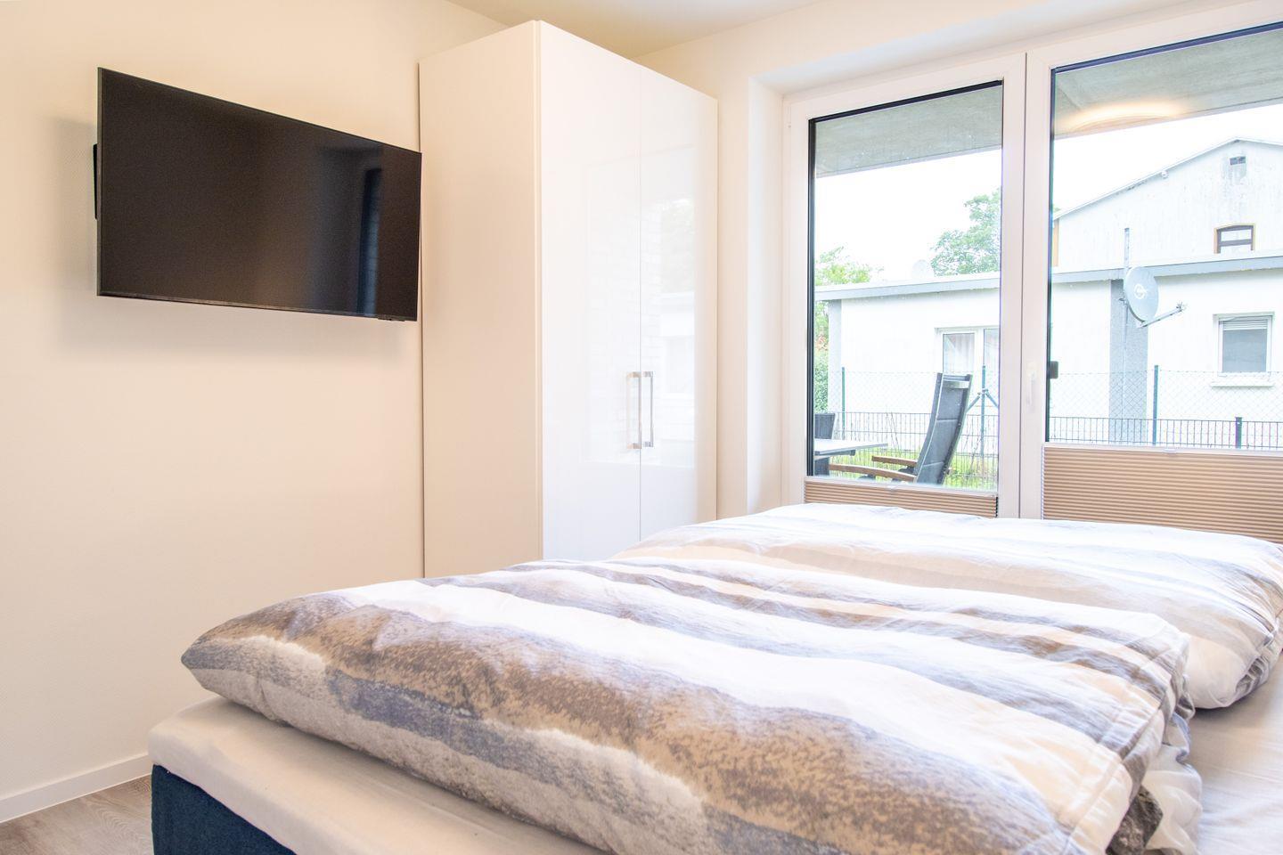 Nur 100?m vom Strand entfernt liegt diese moderne Erdgeschosswohnung mit großer Terrasse, privater Sauna, zwei Schlafzimmern, Fußbodenheizung und barrierearmer Ausstattung. Perfekt für Paare, Familien oder Gäste mit Hund – komfortabel, ruhig und hochwertig.
