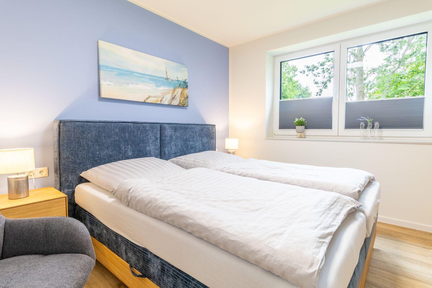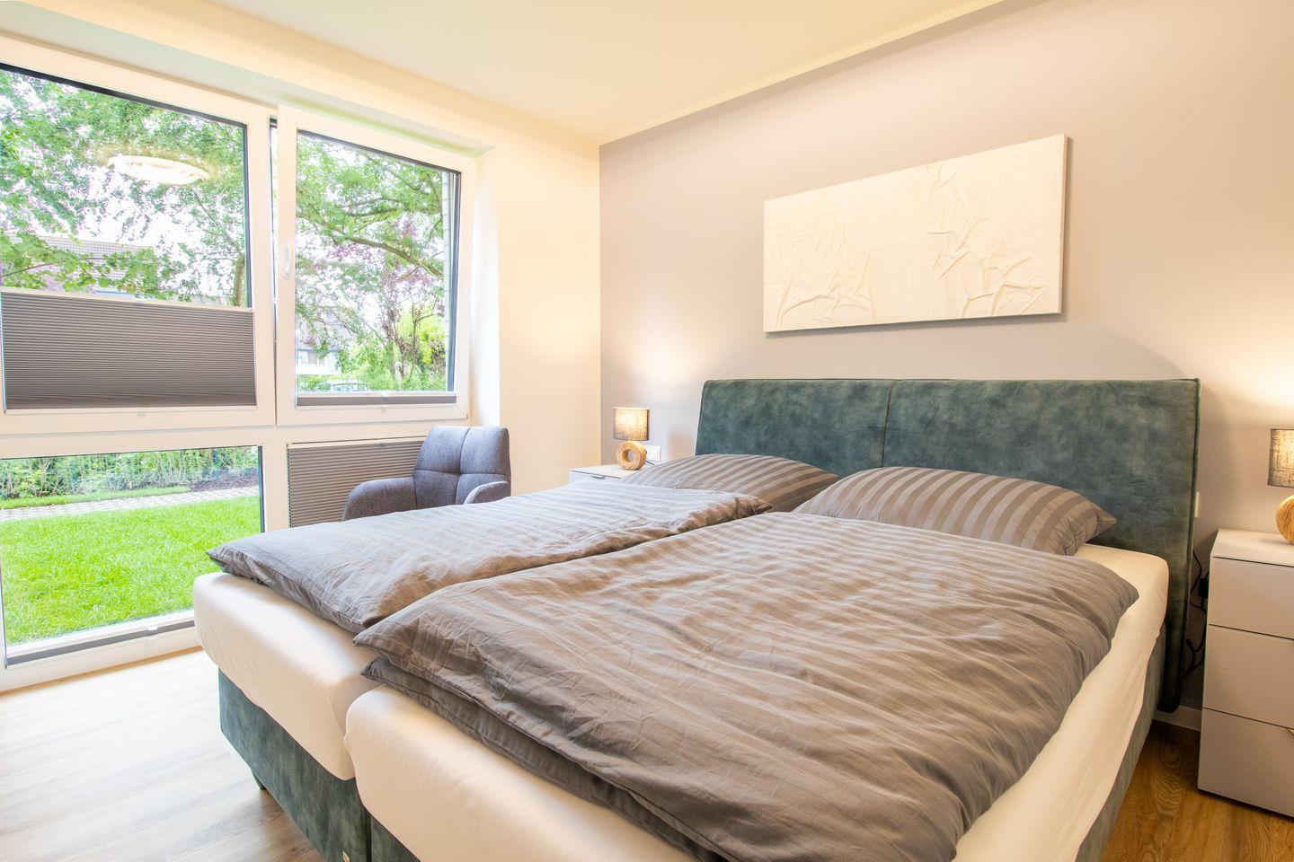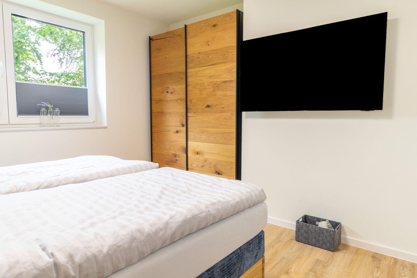 Zwei gemütliche Schlafzimmer mit Boxspringbetten und eigenem Smart-TV bieten dir besten Schlafkomfort. Die ruhige Lage sorgt zusätzlich für erholsame Nächte – ideal für Familien, Paare oder befreundete Gäste.