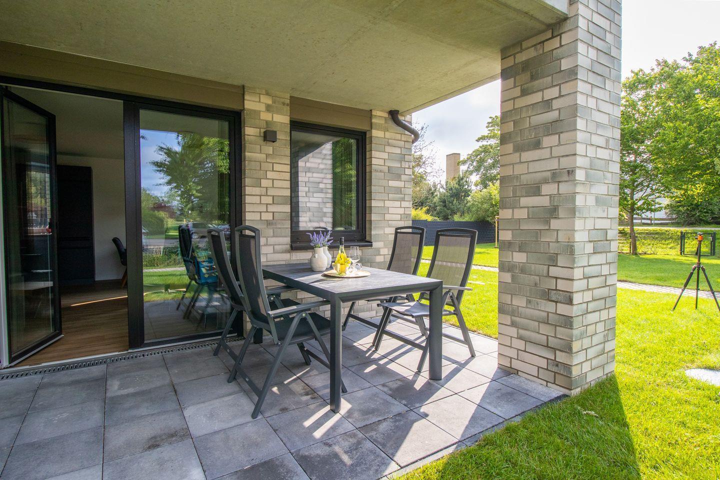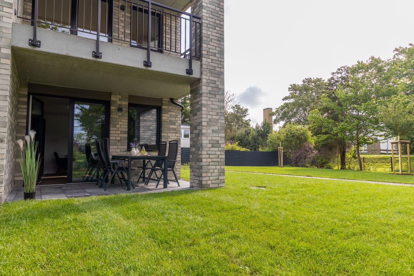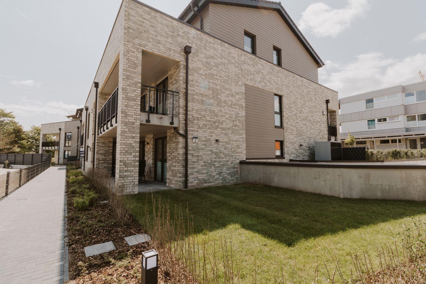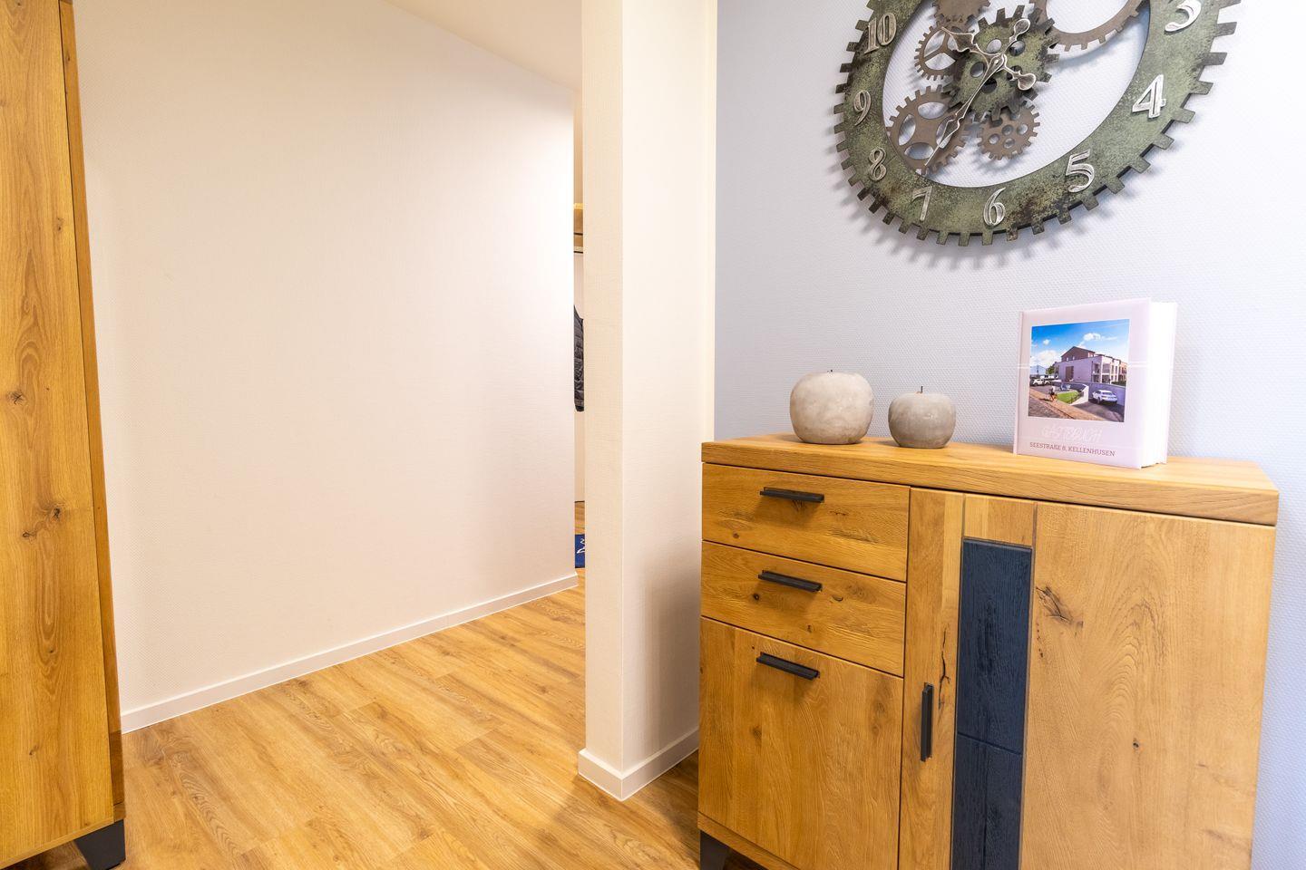 Der helle Wohnbereich mit bodentiefen Fenstern öffnet sich zur überdachten Terrasse – ideal für Frühstück an der frischen Luft oder entspannte Abende. Die offene, komplett ausgestattete Küche lädt zum Kochen und Genießen ein. Für ein angenehmes Raumklima sorgt eine moderne Wohnraumlüftung.