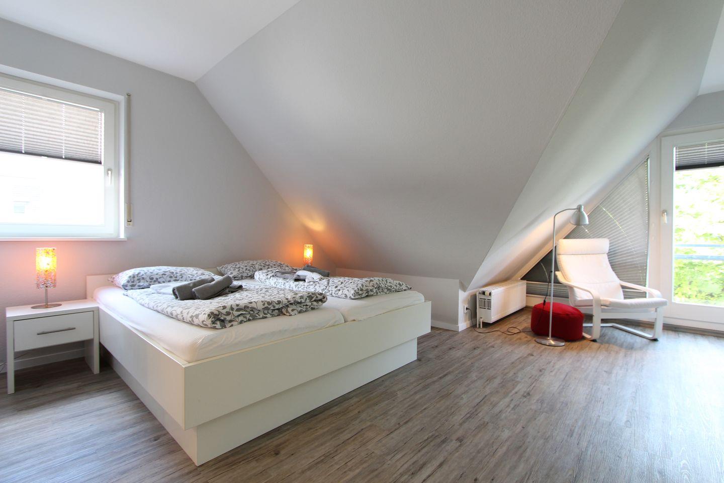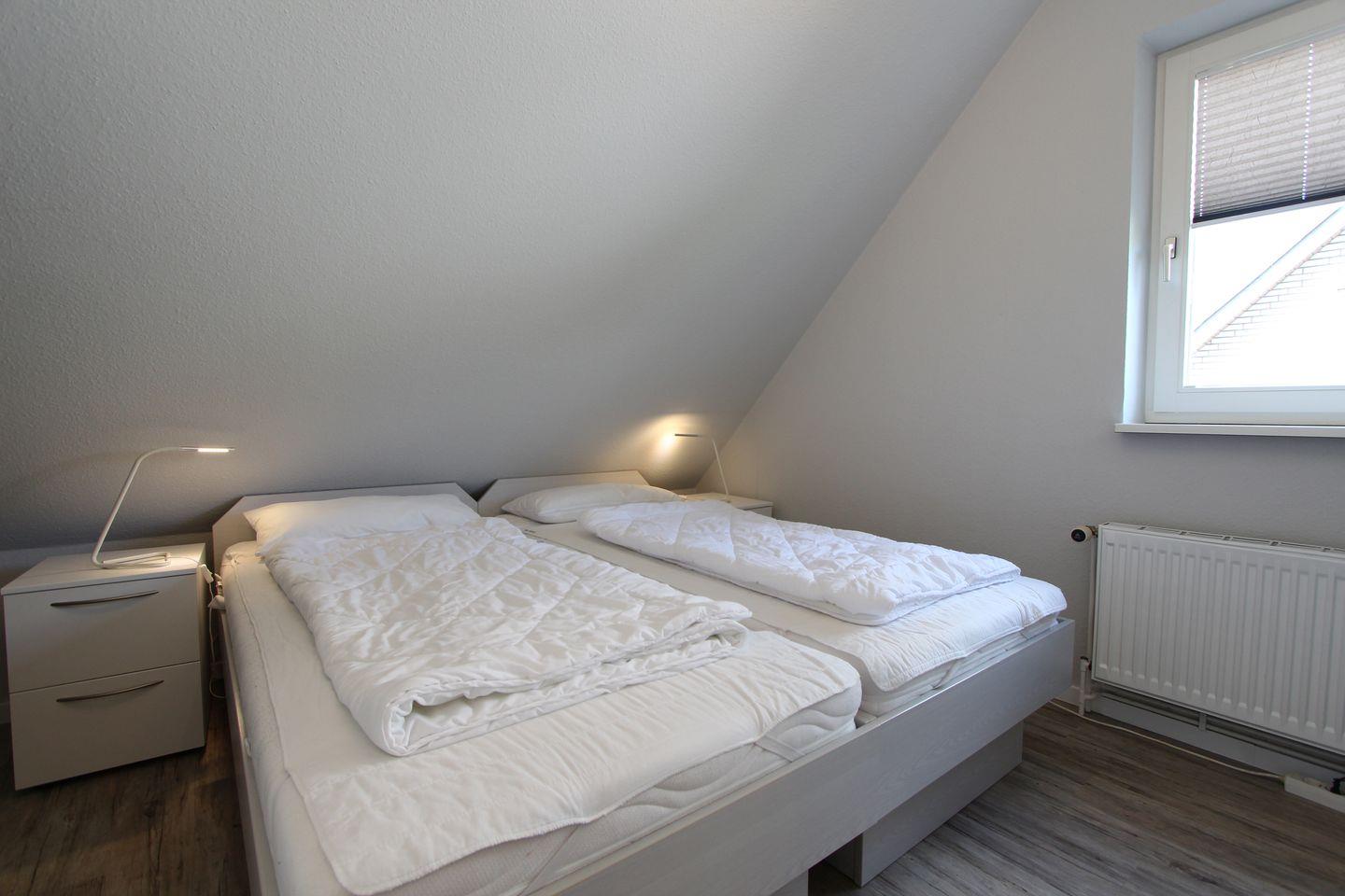 Urlaub mit idyllischem Garten, Strandnähe, auf zwei Ebenen für max. 4 Personen in einer Doppelhaushälfte. Im Erdgeschoss befindet sich ein großes Wohnzimmer mit Sofaecke und Essbereich. Durch die große Fensterfront zum Garten ist der Wohnbereich sehr hell und einladend. Die Küche des Hauses liegt vor dem Wohnbereich und ist durch einen großen Rundbogen zu erreichen. Ausgestattet mit Gefrierfach im Kühlschrank, Backofen und einer Geschirrspülmaschine ist hier alles gegeben, was man für die Zubereitung einer leckeren Mahlzeiten braucht. Außerdem befindet sich im Erdgeschoss noch ein helles Duschbad mit Fenster. Die Schlafräume sind im Obergeschoss angelegt. Eines ist mit einem Doppelbett (2 Matratzen á 0,90x2,00m), einem Schrank und einem Fernseher ausgestattet, das zweite hat zwei zusammengeschobene Einzelbetten (2 Matratzen á 0,90x2,00m), einen Schrank und ebenso ein TV. Außerdem ist auch oben ein Duschbadezimmer vorhanden. Die Terrasse mit Ost-Lage erreicht man durch das Wohnzimmer. Eine 2. Terrasse befindet sich unten im Garten und bietet zusätzlich nachmittags bis in die Abendstunden sonnige Momente. Der Garten und die Terrasse sind mit der anliegenden Doppelhaushälfte eingezäunt und ein Mährobotor übernimmt die Pflege des Rasens. Die Garage ist nicht im Mietumfang enthalten, aber der rechte Carportbereich vor der Garage darf gerne genutzt werden, ebenso die Ladestation für E-PKW (gegen Gebühr). Ein schöner Spaziergang von ca. 6 Minuten führt direkt an den Kellenhusener Strand. Auch dem Urlaub mit dem Haustier steht generell nichts im Wege, denn nach Rücksprache und gegen Aufpreis darf auch Ihr Hund mit anreisen. Wir möchten darauf hinweisen, dass im Nebenhaus auch ein Hund wohnt. Zur Anreise sollte daher ein Kennenlernen der Hunde möglich sein. Bei diesem Objekt ist die Erstausstattung an Handtüchern und Bettwäsche inklusive, außerdem ist eine Waschmaschine vorhanden.