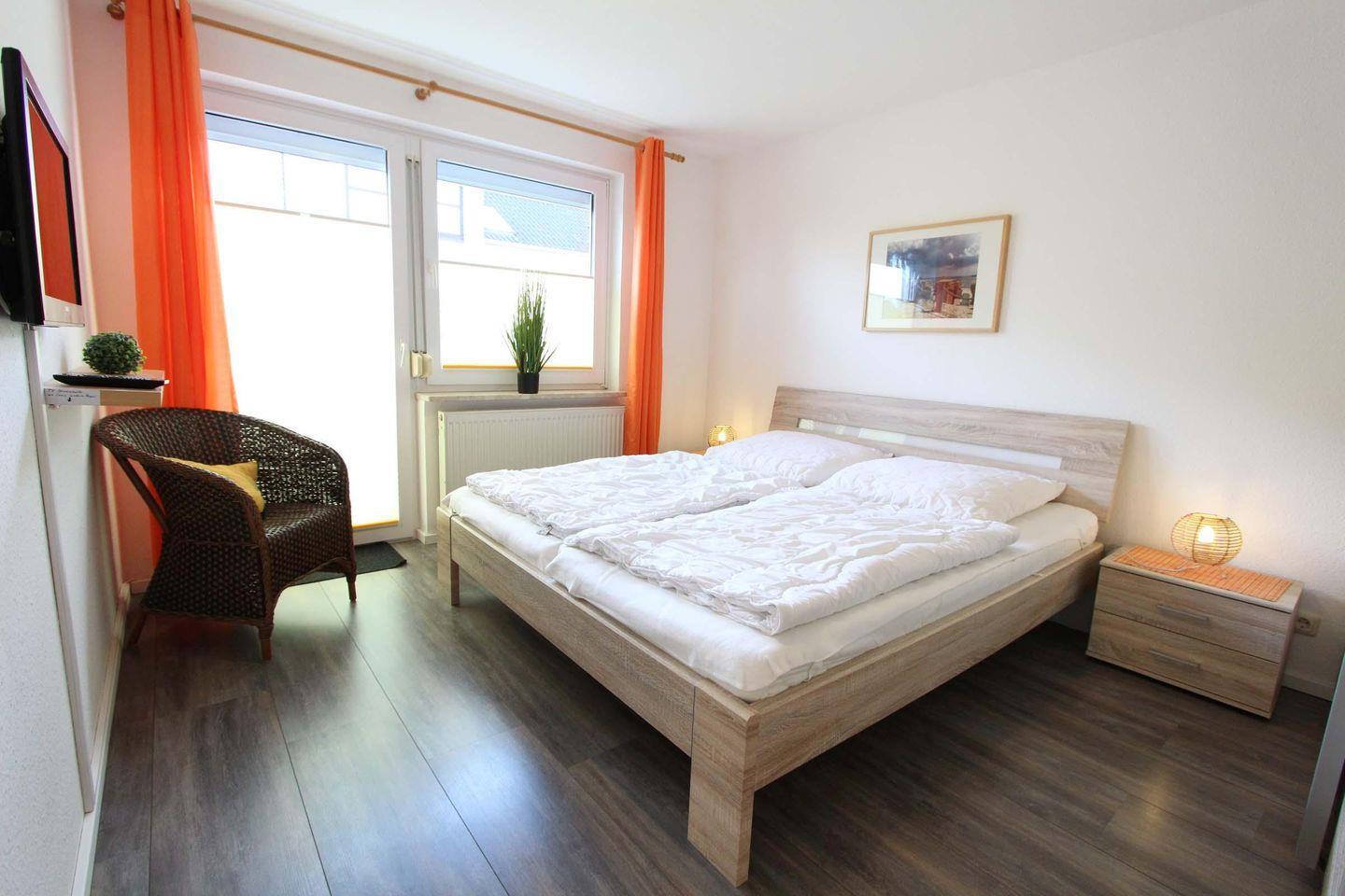 Gemütliche 2-Personen-Ferienwohnung direkt am Deich – nur 1 Gehminute zum Strand! Die 48 m² große Nichtraucherwohnung bietet ein helles Wohnzimmer mit Küche und Südwest-Balkon, ein separates Schlafzimmer und einen Fahrradraum. Hunde sind auf Anfrage willkommen. Waschmaschine, Trockner und Wäschepaket zubuchbar.