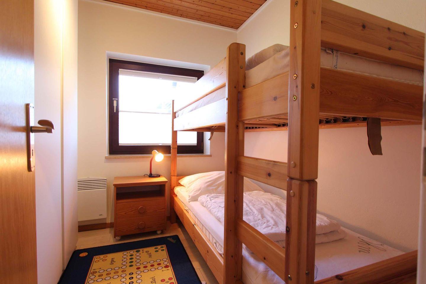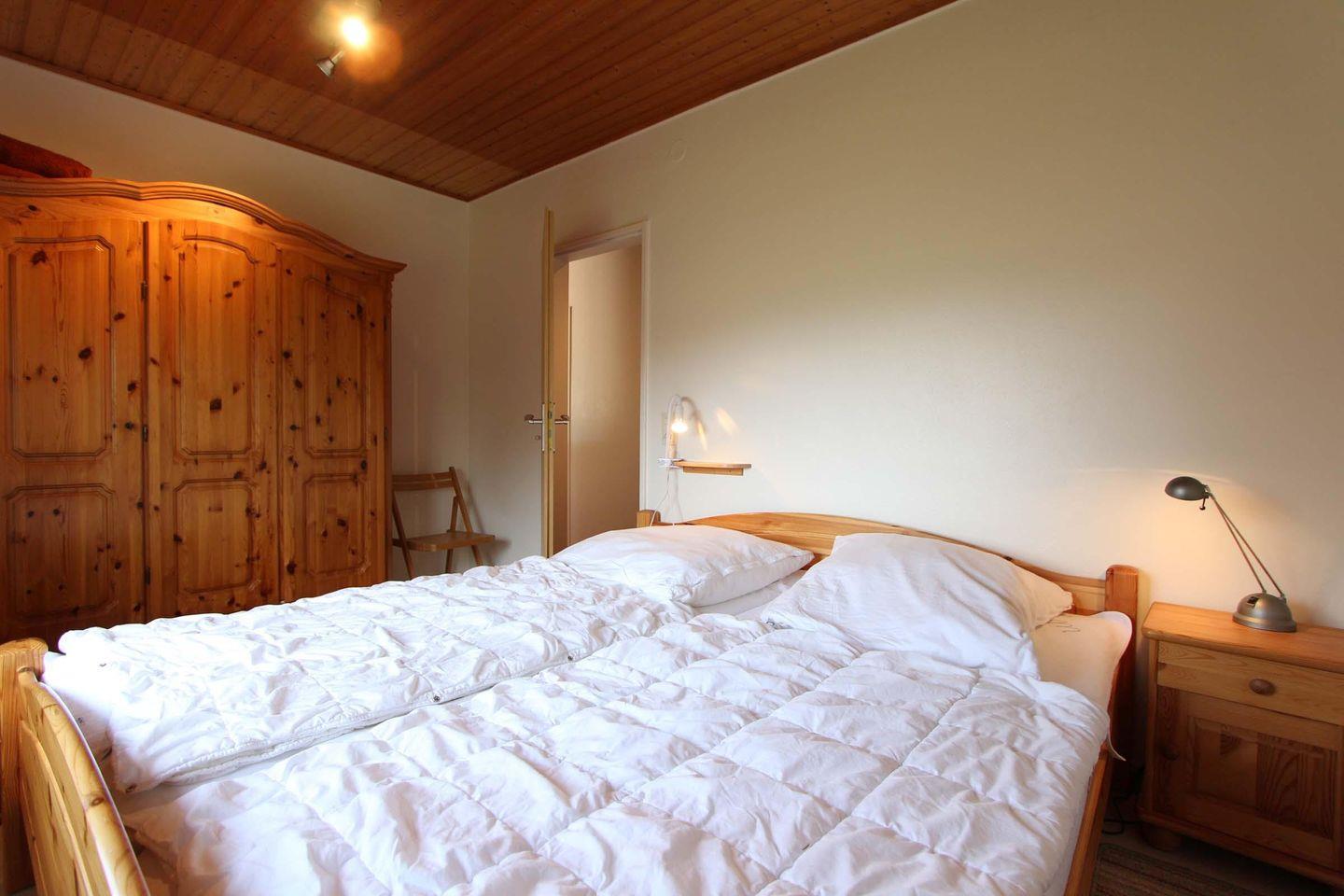 Die Wohnung verfügt über insgesamt vier Zimmer, darunter drei separate Schlafzimmer. Das Wohn- und Esszimmer ist offen gestaltet und bietet eine angenehme Atmosphäre, die durch den offenen Kamin besonderen Charme erhält. Für gemütliche Momente stehen Ihnen ein Sofa, ein Sessel und ein TV (25–34 Zoll) zur Verfügung. Die großen Fenster sind mit Sichtschutz ausgestattet und lassen viel Tageslicht herein. Für Ihr Wohlbefinden sorgt eine Elektroheizung, während der Bodenbelag in Wohn- und Schlafzimmern aus pflegeleichtem Linoleum besteht.