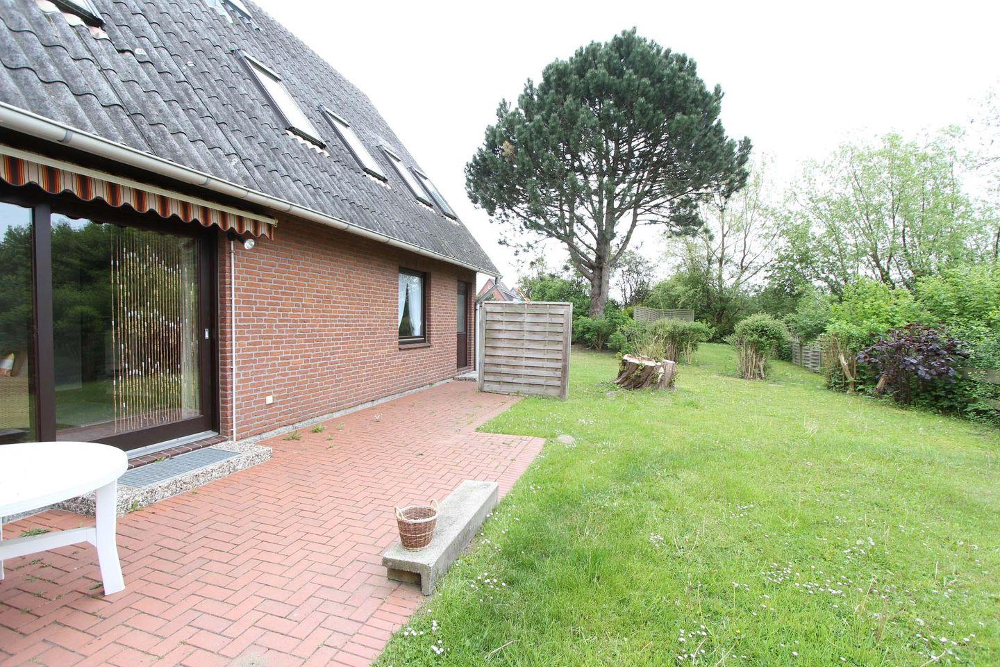 Vom Wohnbereich aus gelangen Sie direkt auf die private Terrasse mit Markise, die zum Entspannen im Grünen einlädt. Dank Gartenmöbeln können Sie bei schönem Wetter die frische Ostseeluft genießen. Der dazugehörige Garten rundet das Angebot ab.