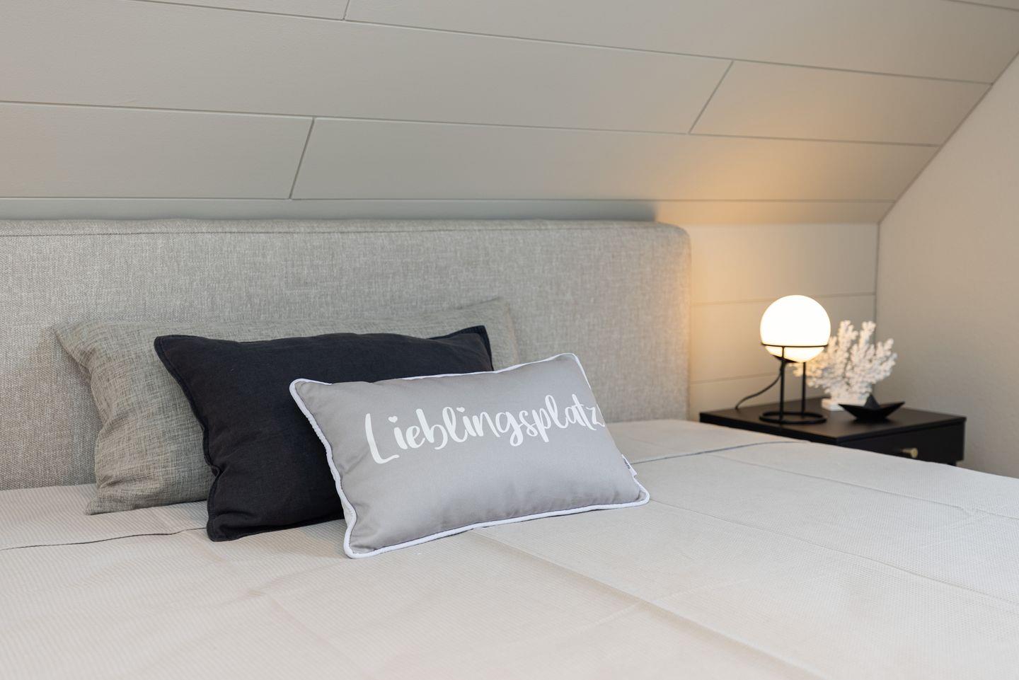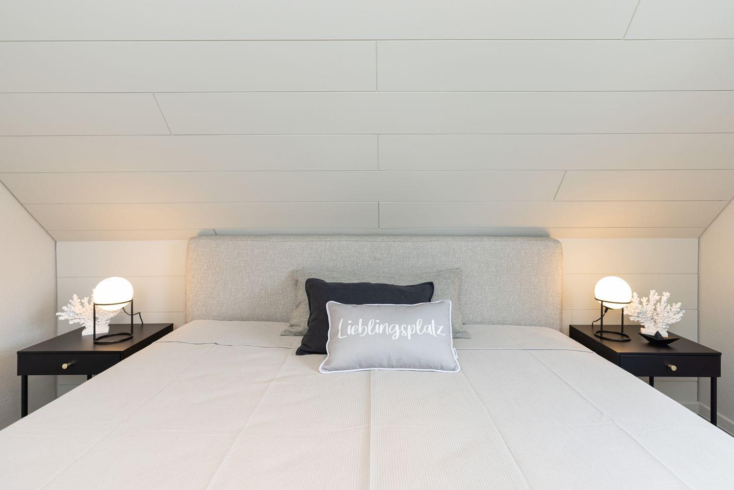 Ein separates Schlafzimmer ist mit einem Doppelbetten (2 Matratzen á 0,90x2,00m) ausgestattet. Für die ganz kleinen Gäste gibt es auf Anfrage ein Kinder-Reisebett und einen Hochstuhl.