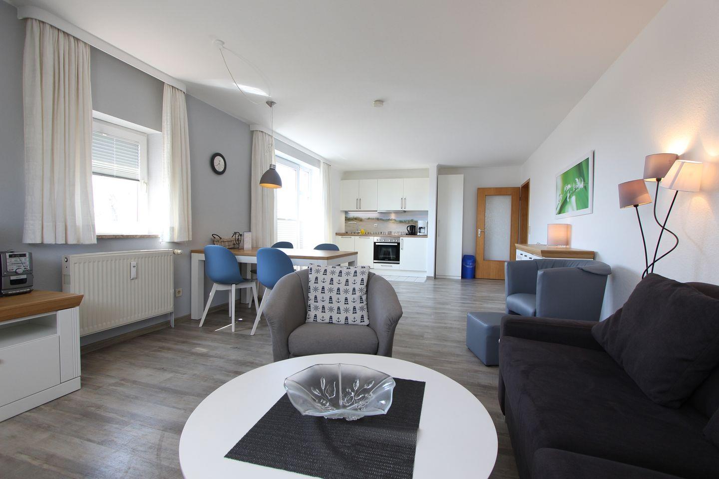 Die komfortable Ferienwohnung Kaiserhof Whg. 13 im 3. Stock bietet auf 52 m² Platz für bis zu 4 Personen. Sie verfügt über ein separates Schlafzimmer, einen offenen Wohn- und Essbereich mit moderner Küche, Balkon mit eingeschränktem Meerblick, WLAN, zentrale Lage nur 100 m zum Sandstrand sowie einen privaten Parkplatz. Haustiere sind willkommen.