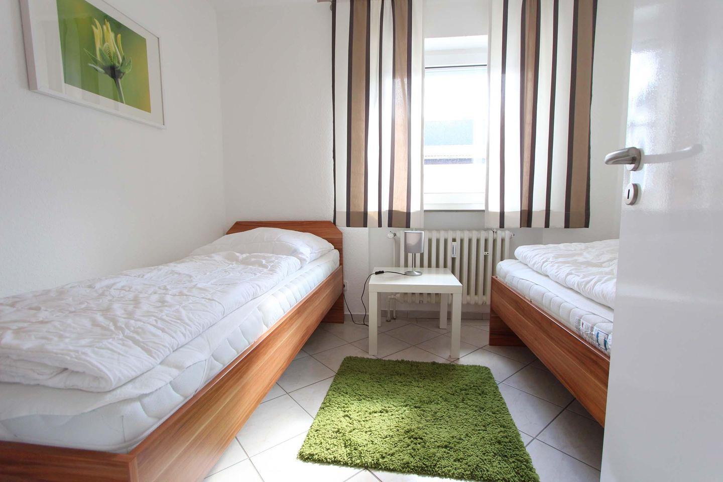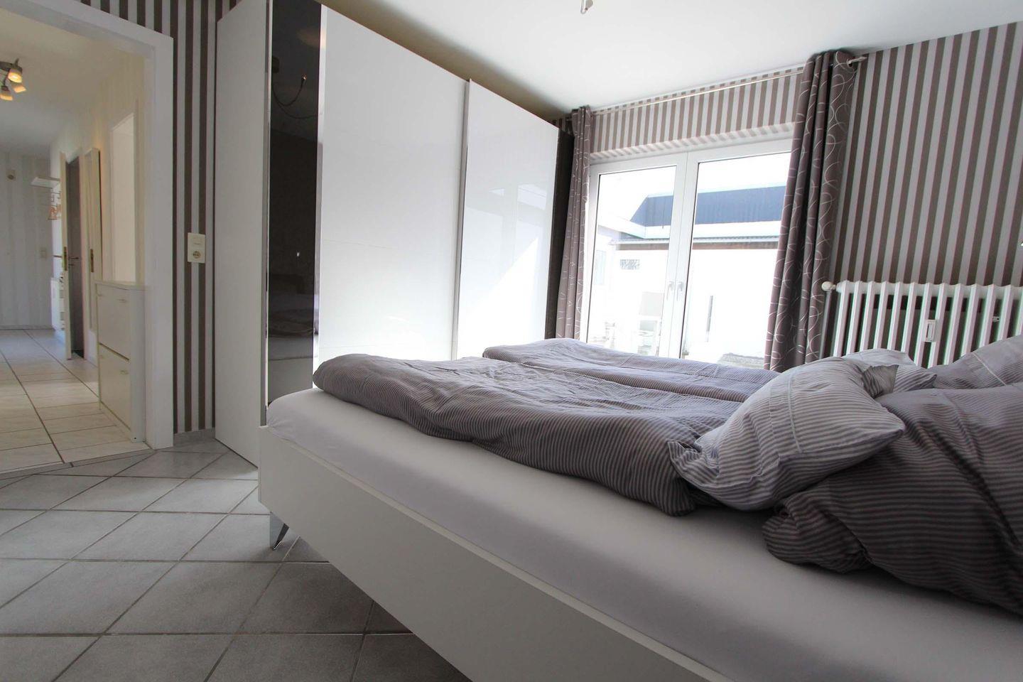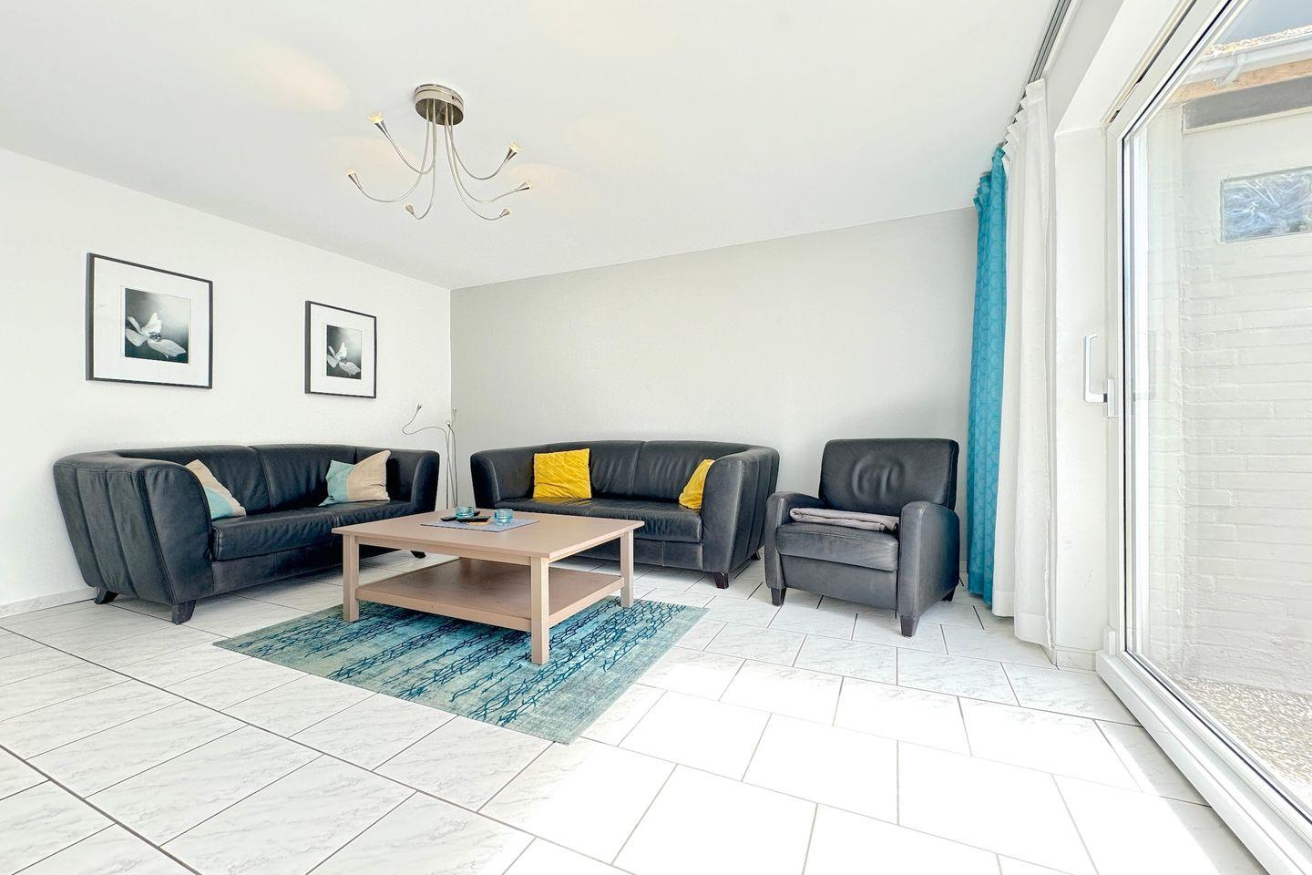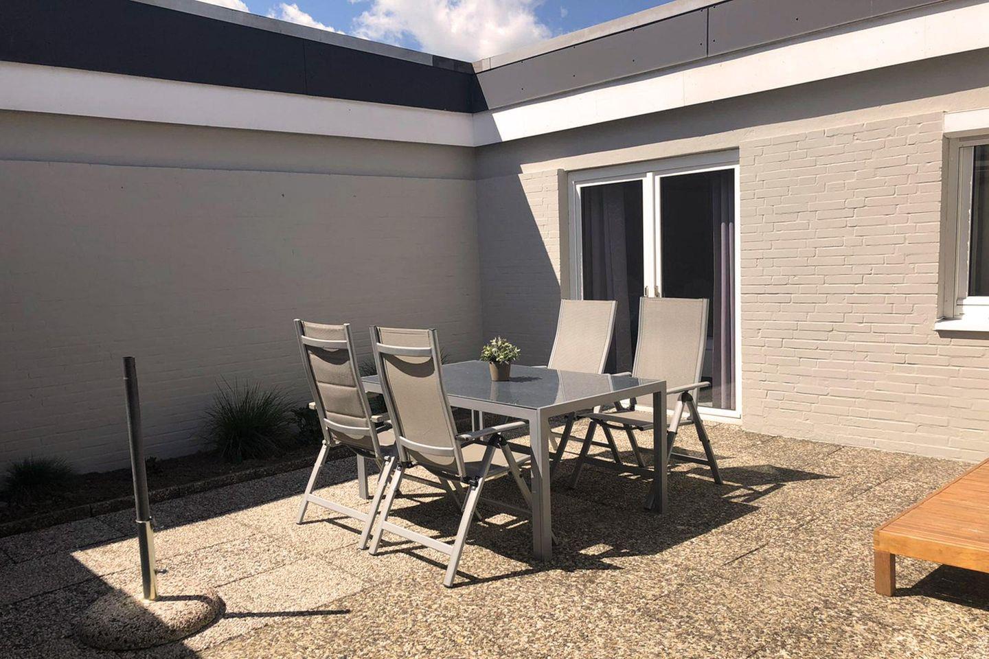 Für den Urlaub mit 4 Personen ist dieses ca. 62 qm große Atriumhaus bestens geeignet. Die Ausstattung des Wohnzimmers ist modern und gemütlich, der Raum selbst ist außergewöhnlich sonnig und hell. Die separate Küche bietet mit dem Backofen, der Geschirrspülmaschine, dem Gefrierfach im Kühlschrank und dem gemütlichen Essbereich einen tollen Rückzugsort zum entspannten Kochen und gemeinsamen Essen. Schlafmöglichkeiten gibt es ein Doppelbett (2 Matratzen á 0,90x2,00m) in dem einen Schlafraum und zwei Einzelbetten (Matratze á 0,90x2,00m) in dem zweiten Schlafraum. Beide Räume sind hochwertig eingerichtet und laden zum entspannen und wohlfühlen ein. Auch für die kleinsten Gäste wäre ein Kinder-Reisebett und ein Hochstuhl verfügbar. Das Badezimmer hat eine ausgesprochen angenehme Größe, dass neben der großen Eckbadewanne sogar eine Waschmaschine Platz gefunden haben. Die innenliegende Terrasse ist vom Wohnzimmer und vom Schlafzimmer zugänglich und hatte die perfekte, sonnige Süd-West-Lage. Insgesamt liegt das Objekt in bester zentraler Lage, das Auto kann auf dem dazugehörigen Parkplatz bleiben, denn bis zum Sandstrand sind es nur 5 Gehminuten. Auch dem Urlaub mit dem Haustier steht generell nichts im Wege, denn nach Rücksprache und gegen Aufpreis sind Haustiere gestattet. Eine Besonderheit hier ist es, dass der Eigentümer Ihnen kostenfrei die Erstausstattung der Bettwäsche zur Verfügung stellt.