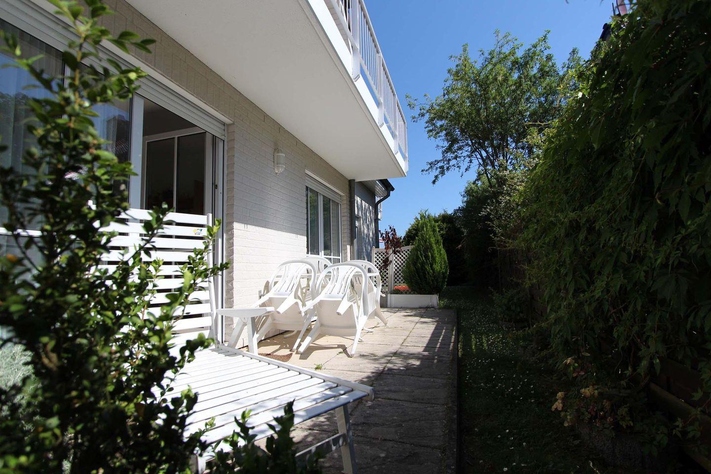 Diese gemütliche Erdgeschosswohnung bietet auf ca. 39 qm Platz für bis zu 2 Personen und ist sehr strandnah gelegen. Der Wohnbereich ist dank einer großen Fensterfront lichtdurchflutet und einladend. Hier befinden sich auch der Essbereich und eine voll ausgestattete Küchenzeile mit Backofen und Geschirrspülmaschine. Das separate Schlafzimmer verfügt über ein bequemes Doppelbett und einen Kleiderschrank. Das helle Duschbad ist mit einem Handtuchheizkörper ausgestattet. Auf der sonnigen Terrasse in Richtung Süd-Osten kann man entspannen. Der Sandstrand von Kellenhusen ist in weniger als 2 Minuten zu Fuß erreichbar. Haustiere sind auf Anfrage und gegen Aufpreis willkommen. Für Fahrräder gibt es einen geräumigen Abstellraum. Gäste können gegen eine Gebühr ein Wäschepaket hinzubuchen.
