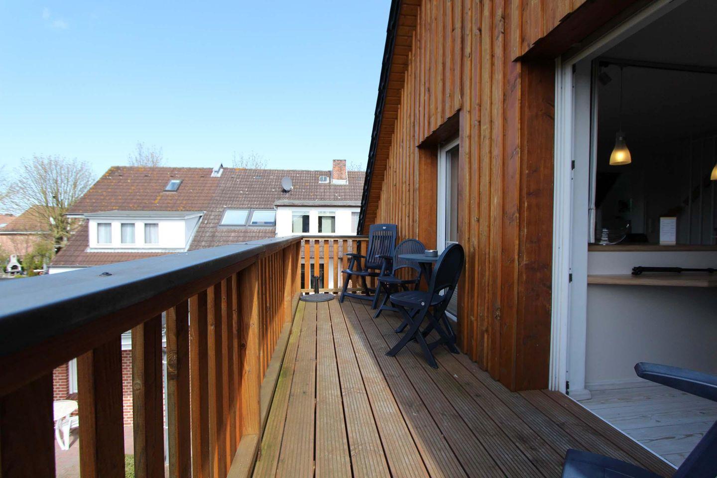 Das Haus Heckenrose bietet mehrere Wohnungen, zum einen diese ca. 55 qm große Obergeschosswohnung für max. 4 Personen. Der offene Wohnbereich ist sehr geschmackvoll, schick und gemütlich eingerichtet. Die Sofaecke lädt zum entspannen und erholen ein. Die sehr schicke und hochwertige Küche ist gemeinsam mit dem Esstisch im Wohnbereich integriert. Das große Ceranfeld mit Dunstabzugshaube, der Geschirrspüler, der Backofen und zusätzlich zur Kaffeemaschine auch eine Senseo-Maschine runden die schicke Küche ab. Das große Schlafzimmer bietet ein schickes und hochwertiges Doppelbett (2 Matratzen á 0,90x2,00m), das kleine Schlafzimmer unterm Dach ist mit zwei gemütlichen Einzelbetten (0,90x2,00m) ausgestattet. Für die ganz kleinen Gäste gibt es ein Kinder-Reisebett, welches allerdings eine selbstmitgebrachte Matratze benötigt. Ebenfalls verfügt die Wohnung über ein schönes Duschbad. Auf dem Balkon mit West-Lage kann man entspannen und sich erholen. Außerdem steht der Garten auch allen Gästen des Hauses zur Verfügung. Mitgebrachte Fahrräder können ebenfalls im Garten abgestellt werden. Bis zum Kellenhusenser Sandstrand sind es nur 6 Gehminuten. Sollte das Reisegepäck so gering wie möglich ausfallen, dann ist ein Wäschepaket für den Aufenthalt in Kellenhusen gegen Gebühr einfach buchbar und auch eine Waschmaschine und ein Trockner können gebührenpflichtig in dem Haus genutzt werden.