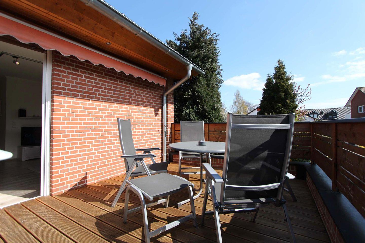 Das Haus Heckenrose bietet mehrere Wohnungen, zum einen diese ca. 45 qm große Erdgeschosswohnung für max. 2 Personen. Der offene Wohnbereich ist sehr geschmackvoll, schick und gemütlich eingerichtet. Die Sofaecke lädt zum entspannen und erholen ein. Die sehr schicke und hochwertige Küche ist gemeinsam mit dem Esstisch im Wohnbereich integriert. Das große Ceranfeld mit Dunstabzugshaube, der Geschirrspüler und der Backofen runden die schicke Küche ab. Das Schlafzimmer bietet ein schickes und hochwertiges Doppelbett (2 Matratzen á 0,90x2,00m). Ebenfalls verfügt die Wohnung über ein schönes Duschbad. Auf der Terrasse mit Süd-West-Lage kann man ebenfalls entspannen und sich erholen. Außerdem steht der Garten auch allen Gästen des Hauses zur Verfügung. Mitgebrachte Fahrräder können ebenfalls im Garten abgestellt werden. Bis zum Kellenhusenser Sandstrand sind es nur 6 Gehminuten. Auch dem Urlaub mit dem Haustier steht generell nichts im Wege, denn nach Rücksprache und gegen Aufpreis sind Haustiere gestattet. Sollte das Reisegepäck so gering wie möglich ausfallen, dann ist ein Wäschepaket für den Aufenthalt in Kellenhusen gegen Gebühr einfach buchbar und auch eine Waschmaschine und ein Trockner können gebührenpflichtig in dem Haus genutzt werden.