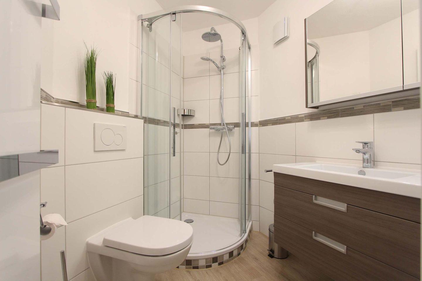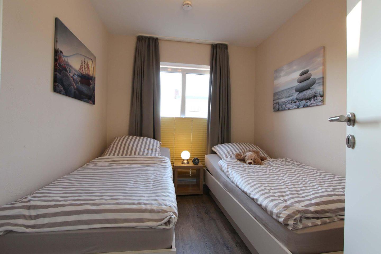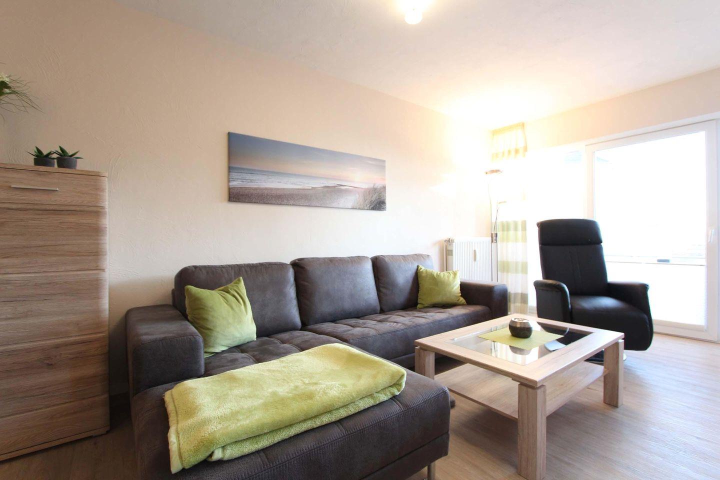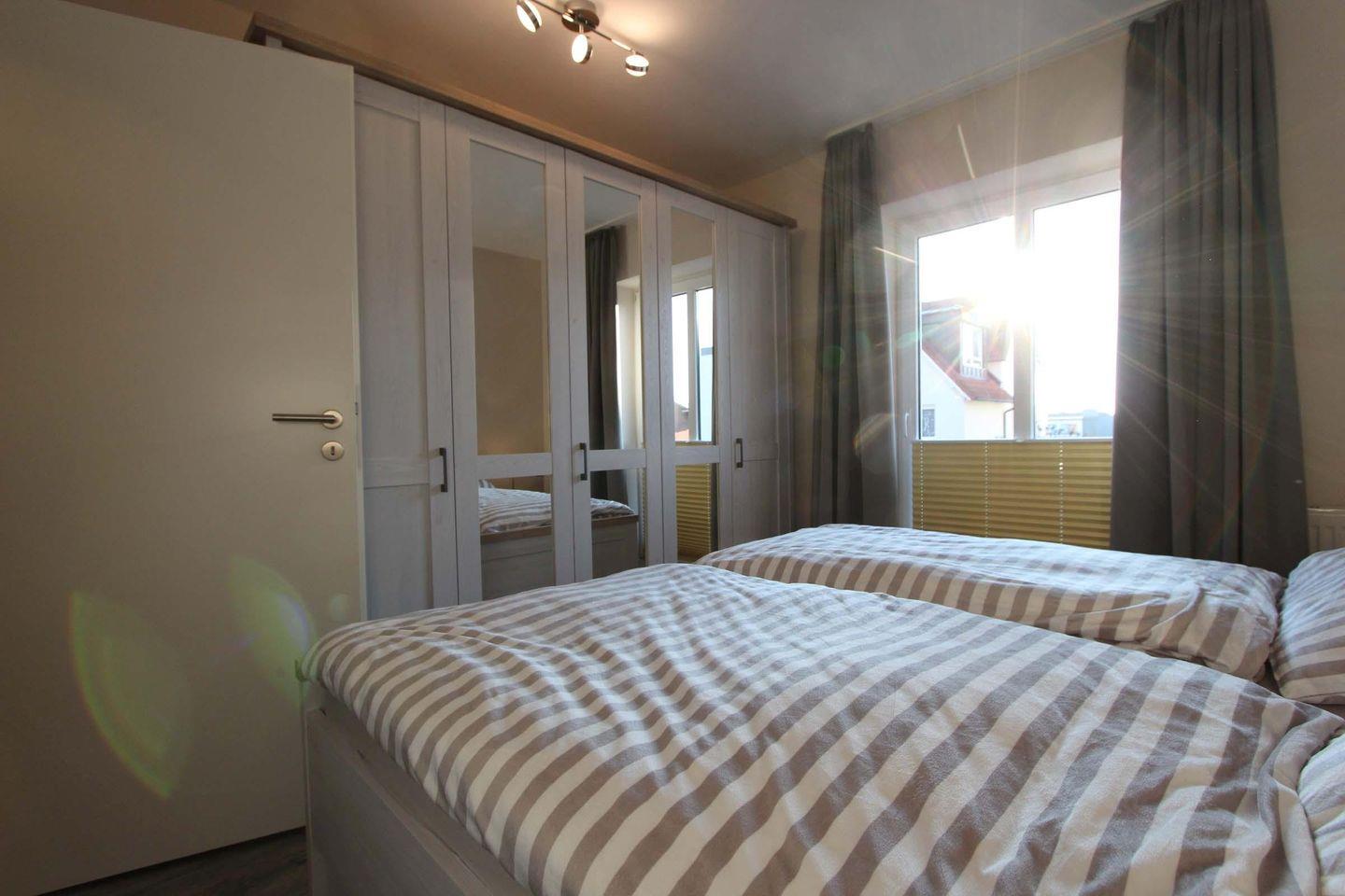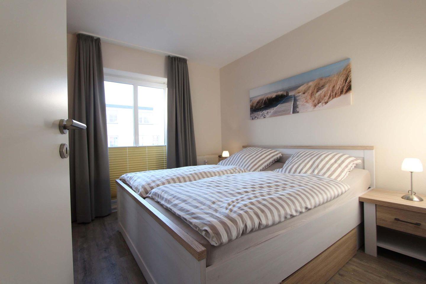 Im Herzen von Kellenhusen liegt die Wohnresidenz. In dieser Wohnanlage befindet sich auch die sehr schöne und stilvolle Wohnung 3, welche mit ca. 61 qm ersten Obergeschoss liegt. Das Wohnzimmer ist mit einer großzügigen Sofaecke und einem hochwertigen Sessel eingerichtet. Außerdem befindet sich der Essbereich und die Küche mit einem Geschirrspüler, einem Backofen und einer Mikrowelle im hellen Wohnbereich. Die zwei separaten Schlafzimmer sind beide sehr gemütlich und schön gestaltet. Im größeren Zimmer steht ein Doppelbett (2 Matratzen á 0,90x2,00m) und ein Kleiderschrank. Das zweite Zimmer ist bestens für zwei Kinder ausgestattet und verfügt über zwei Einzelbetten (0,80x2,00m), einen Schrank und einen Fernseher. Das Badezimmer der Wohnung ist modern und schick gehalten, die Duschkabine ist aus Glas und ansonsten ist es ein sehr geräumiges Badezimmer. Der schöne, sonnige Balkon ist Richtung Süd-Westen gelegen und teilweise überdacht. Bei dieser Wohnung liegt das schöne so nah, denn die Ostsee erreicht man schon innerhalb von 2 Gehminuten. Haustiere sind in dieser Wohnung leider nicht gestattet. Für mitgebrachte Fahrräder ist im Keller ein Abstellraum vorhanden. Sollte das Reisegepäck so gering wie möglich ausfallen, dann ist ein Wäschepaket für den Aufenthalt in Kellenhusen gegen Gebühr einfach buchbar ebenso stehen im Haus Waschmaschine und Trockner gebührenpflichtig zur Verfügung.