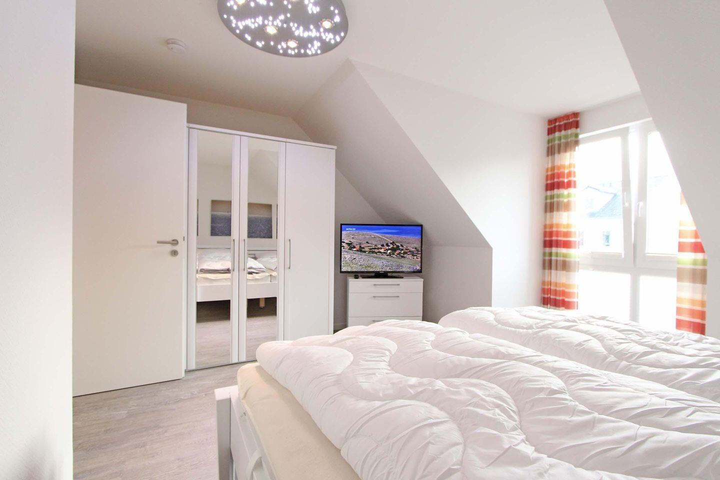 Dieses großzügige und stilvolle Reihenendhaus erstreckt sich mit ca. 75 qm auf zwei Ebenen. Ein sehr schicker, maritim, moderner Wohnbereich mit einer sehr hochwertigen Einrichtung lädt zum entspannen und wohlfühlen ein. Mit Sofaecke, Essbereich und offener Küchenzeile ist hier alles bestens vereint. Die Küche ist mit einem Multifunktionsofen (integrierte Mikrowelle und Grillfunktion) und einer Geschirrspülmaschine ausgestattet. Ansonsten ist im Erdgeschoss noch ein Gäste-WC und ein Hauswirtschaftsraum mit Waschmaschine und Trockner. Im Obergeschoss befinden sich dann 2 separate Schlafzimmer und ein Badezimmer. Das erste Schlafzimmer ist mit einem Doppelbett (2 Matratzen á 0,90x2,00m), einem geräumigen Kleiderschrank und einem Fernseher eingerichtet, wobei das zweite Schlafzimmer dann mit zwei Einzelbetten (0,90x2,00m) eingerichtet ist. Generell ist alles mit sehr viel liebe zum Detail eingerichtet und dekoriert. Die dazugehörige Terrasse hat eine schöne und sonnige Süd-West-Lage und lädt ebenfalls zum verweilen und entspannen ein. Das Haus "Merlin" liegt nur 8 Gehminuten vom Strand entfernt und auch dem Urlaub mit dem Haustier steht generell nichts im Wege, denn nach Rücksprache und gegen Aufpreis sind Haustiere gestattet. Sollte das Reisegepäck so gering wie möglich ausfallen, dann ist ein Wäschepaket für den Aufenthalt in Kellenhusen gegen Gebühr einfach buchbar.