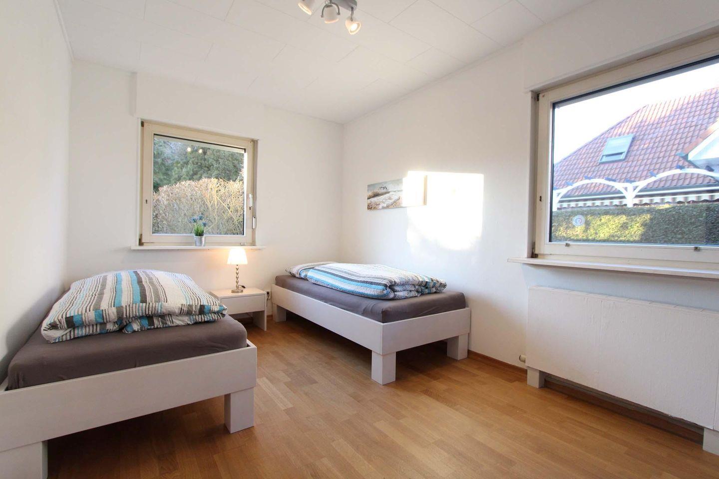 Dieses schöne Einfamilienhaus bietet ca. 150 qm für max. 6 Personen. Auf zwei Etagen verteilen sich drei Schlafzimmer, eine geräumige Wohnküche, ein Hauswirtschaftsraum, ein Gäste-WC, zwei Badezimmer und ein Wintergarten. Im Erdgeschoss befindet sich der schöne und moderne Wohnbereich. Die Sofaecke lädt zum entspannen und kuscheln ein. Integriert in diesem hellen und offenen Wohnbereich ist eine moderne und vollausgestattete Küche mit 4-Platten-Herd, Geschirrspülmaschine und Backofen. Eines der Schlafzimmer befindet sich im Erdgeschoss und ist mit zwei Einzelbetten (0,90x2,00m) möbliert. Das Gäste-WC und auch ein Badezimmer mit Badewanne und Dusche sind hier angeordnet. Im Hauswirtschaftsraum stehen dann noch Waschmaschine und Trockner zur Verfügung. Auf der zweiten Ebene sind zwei Schlafzimmer mit jeweils Doppelbett (2 Matratzen á 0,90x2,00m) und großzügigen Kleiderschränken. Alle drei Schlafräume sind mit Fernseher ausgestattet. Für die ganz kleinen Gäste gibt es ein Kinderreisebett und einen Hochstuhl. Das obere Badezimmer ist mit einer Duschkabine maritimem Charme gestaltet. Bei diesem Haus wurde an fast alles gedacht, so hat man hier auch kostenloses WLAN. Die schöne, sonnige Terrasse und der Wintergarten haben Süd-West-Lage und der Garten ist teilweise eingezäunt. Sollte dieses Haus noch nicht genügend bieten, dann kommt die tolle Lage noch als Highlight hinzu, denn innerhalb von nichtmal 5 Minuten ist man fußläufig am schönen Strand. Auch dem Urlaub mit dem Haustier steht generell nichts im Wege, denn nach Rücksprache und gegen Aufpreis sind Haustiere gestattet. Für mitgebrachte Fahrräder ist auch ein Abstellschuppen vorhanden. Sollte das Reisegepäck so gering wie möglich ausfallen, dann ist ein Wäschepaket für den Aufenthalt in Kellenhusen gegen Gebühr einfach buchbar.