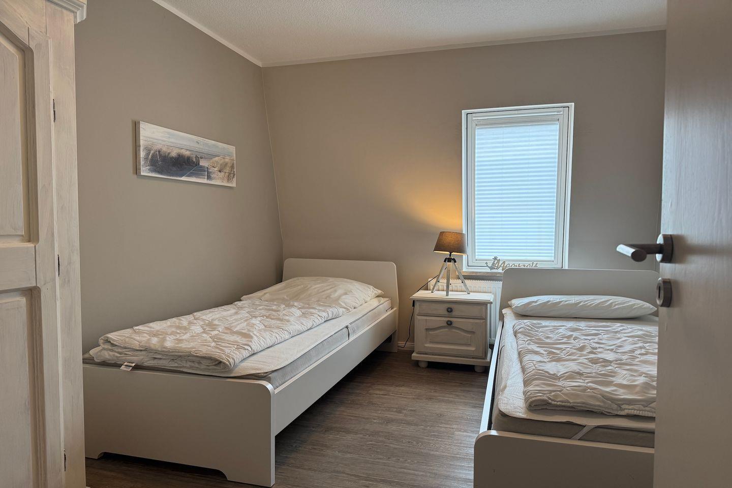 • Ein Schlafzimmer ist mit zwei komfortablen Einzelbetten (je 90x200 cm) eingerichtet und ideal als Kinderzimmer oder Rückzugsort geeignet.
