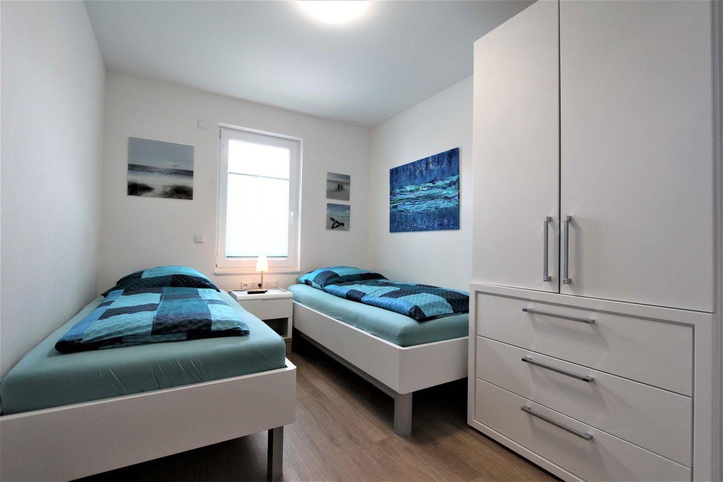 Die 75 qm große behindertenfreundliche Nichtraucherwohnung liegt im Erdgeschoss und ist optimal für 4 Personen ausgelegt. Der offene Wohnbereich ist stilvoll und modern gestaltet und vereint eine schöne, großzügige Couchecke sowie die Küchenzeile mit Essbereich. Die hochwertige und sehr gut ausgestattete Küchenzeile bietet eine Geschirrspülmaschine, eine Mikrowelle und einen Backofen. Im ersten separaten Schlafzimmer steht ein schickes, modernes und extra erhöhtes Doppelbett (2 Matratzen á 0,90x2,00m) und ein Kleiderschrank. Das etwas kleinere zweite Schlafzimmer ist mit zwei Einzelbetten (0,90x2,00m), welche ebenfalls etwas erhöht sind, und auch einem Kleiderschrank ausgestattet. Im sehr schönen und modernen Badezimmer wurde ebenfalls mitgedacht und eine barrierefreie Glasdusche mit Griff eingebaut sowie ein erhöhtes WC. Jacken und Schuhe können im Flur untergebracht werden und stören somit nicht die Gemütlichkeit im Wohnraum. Ein Gartenanteil und eine Südterrasse gehört ebenfalls zu dieser schönen Wohnung dazu. Mitgebrachte Fahrräder können im Fahrradabstellraum im Keller gelagert werden. Die schöne Wohnung liegt nur einige Meter vom Strand, somit ist man innerhalb von ca. 8 Gehminuten am schönen Sandstrand. Haustiere sind hier leider nicht gestattet. Sollte das Reisegepäck so gering wie möglich ausfallen, dann ist ein Wäschepaket für den Aufenthalt in Kellenhusen gegen Gebühr einfach buchbar.
