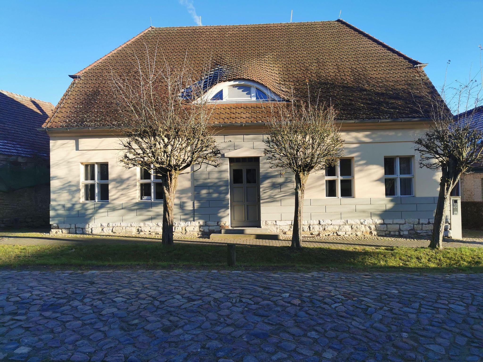 Wohnung im Maisonette Stil mit 2 Räumen und Schlafgallerie ist liebevoll im Landhausstil eingerichtet. Die Lage im Obergeschoss eröffnet den Blick durch das große Rundbogen-Fenster - ein Blick in die abwechlungsreiche havelländische Ur-Landschaft, ausgedehnte Wiesen, Wald, viel Wasser, weitläufige Biotope mit der Vielfalt an Tieren aller Art. Vogelschwärme und Wildtiere sowie die Weite des Himmels mit ihrem Wechsel von Sonne und Wolken lassen sich von hier aus gleichermaßen hören, beobachten und genießen.