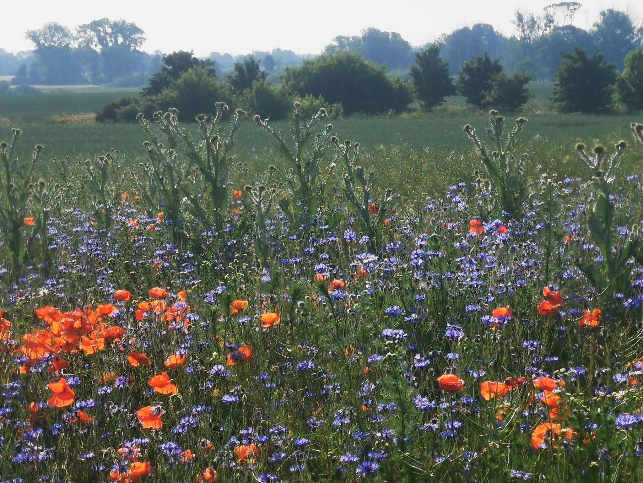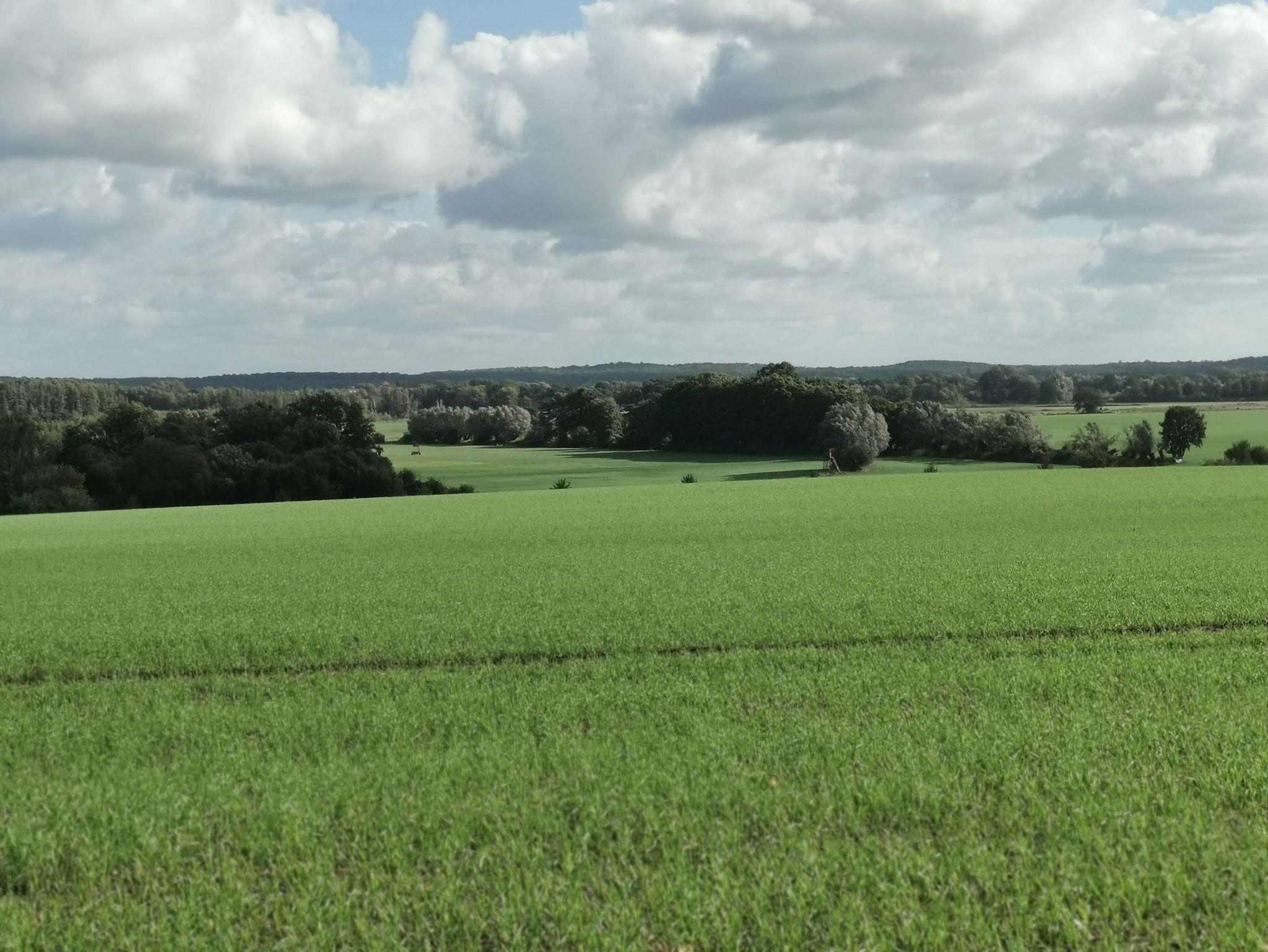 Licht und Ruhe auf dem Land, Gräser und Laub im Wind, Graugänse, Frösche, Bieber im nahen Biotop. Und die Wohnung? Ferien und Kochen müssen Freude machen. Luftig wirkender Wohn-Koch-Speisen-Musik-Leseraum im EG auf 35 qm, da hat Platzangst auch an Tagen wegen Ruhe oder Regen keine Chance. Und das Baumaterial: atmende Gitterziegel mit Putz 40 cm, Fußböden in Natur: Solnhofener Fliesen, Eiche natur geölt und gewachst. Wände ohne Chemie - Naturfarben. Mineralwolle im Dach. Landgrün-Siegel.