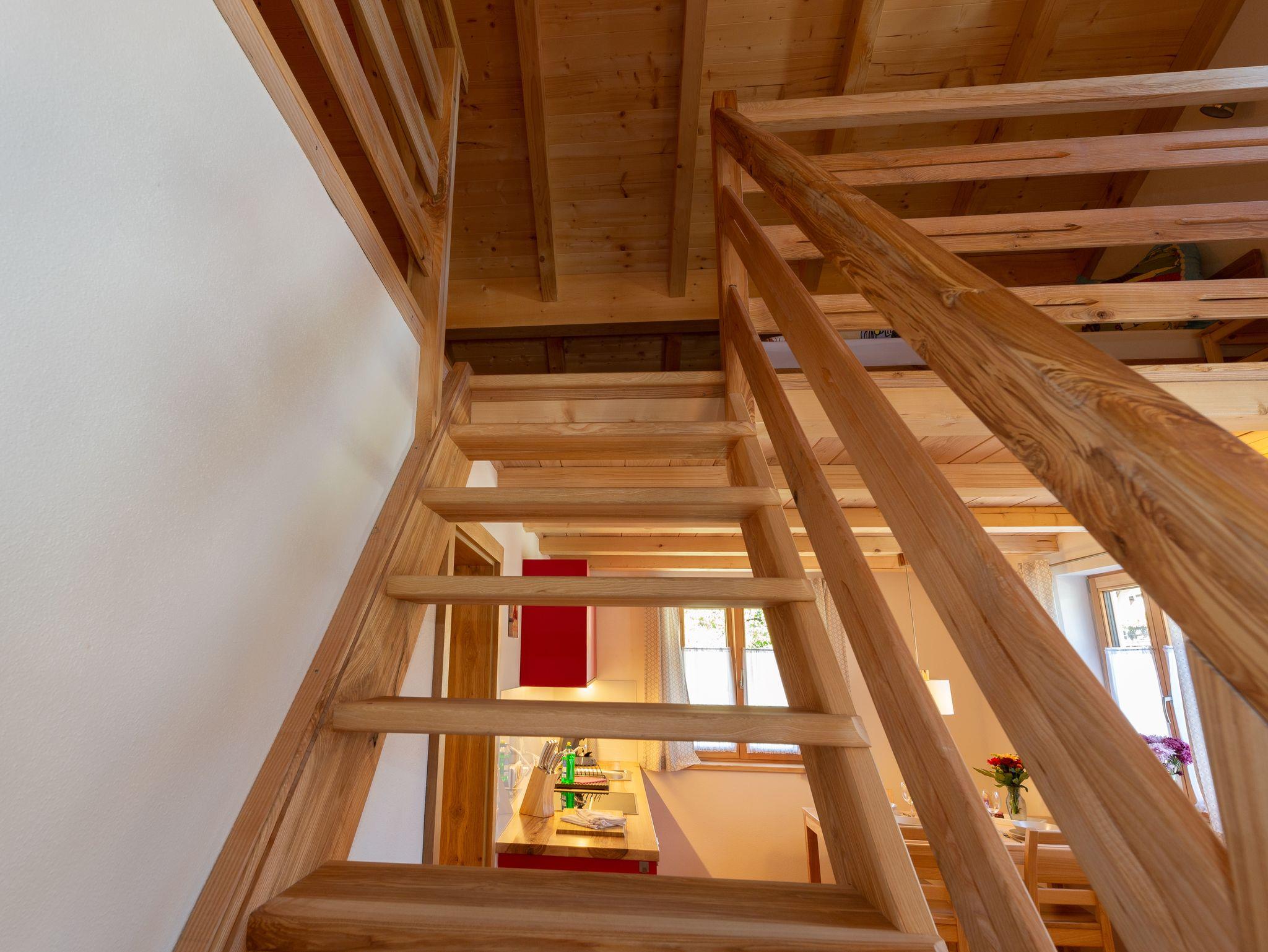 Die Ferienwohnung Nußlberg liegt im 1. Stock mit eigenem Eingang und Balkon. Die Betten befinden sich auf einer Galerie, es gibt ein Einzelbett und 1 Doppelbett. Der Wohn- Essbereich verfügt über eine voll ausgestattete Küche. Kostenloses W-Lan ist vorhanden.