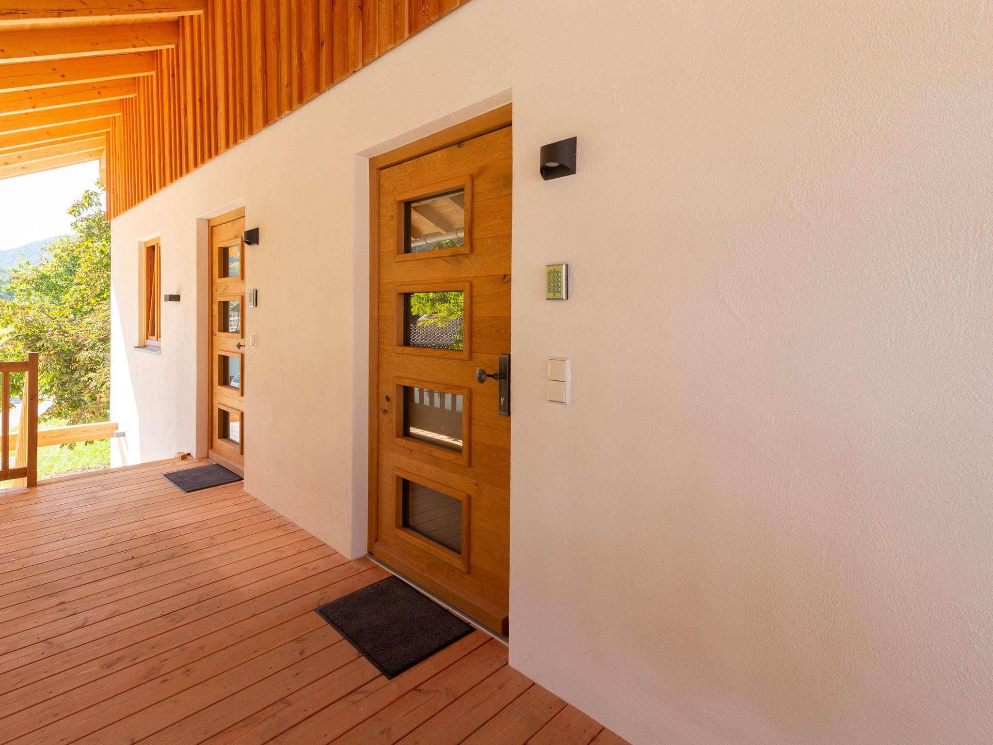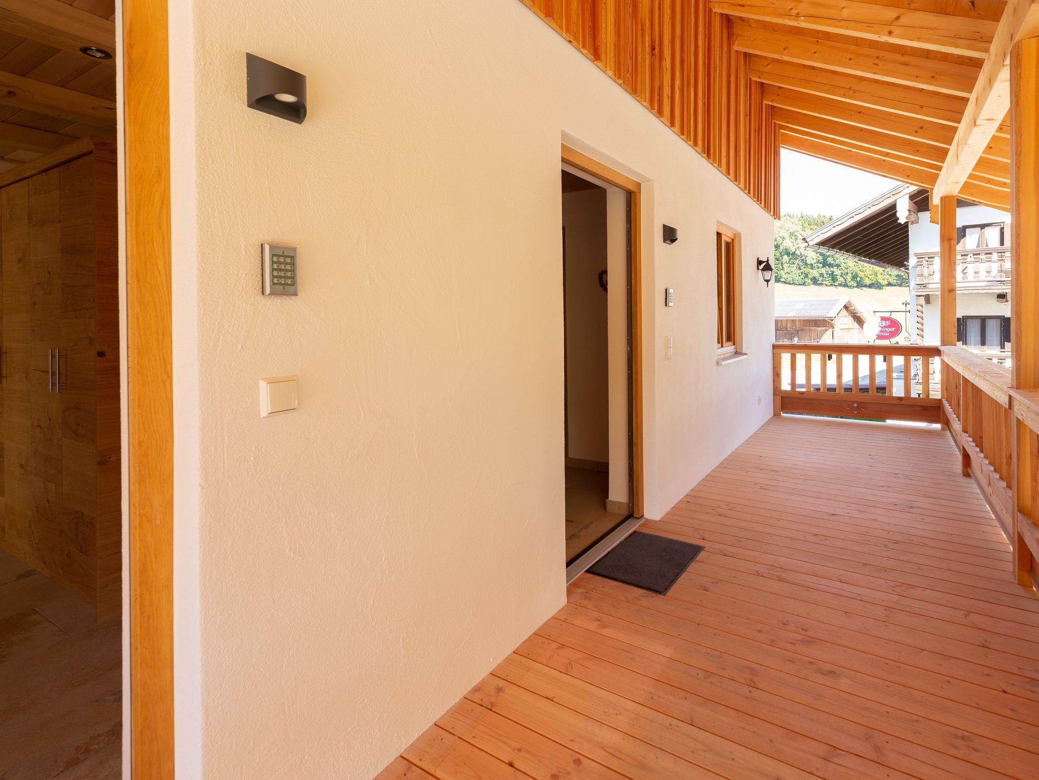 Unser neu erbautes Haus (Fertigstellung 2021) wurde ausschließlich aus Holz aus dem eigenen Wald erbaut. Im Erdgeschoß befindet sich eine Ferienwohnung mit einem Wohn- Esszimmer mit Kamin und zwei Schlafzimmer. Im 1. Obergeschoß gibt es zwei Ferienwohnungen mit jeweils einer Galerie zum schlafen. Das gesamte Gebäude wurde von Handwerkern aus der Region gebaut. Das Holz, aus eigener Forstwirtschaft, wurde direkt am Hof gesägt und zum trocknen gelagert. Die Möbel wurden ebenfalls aus eigenem Holz von regionalen Schreinern gefertigt, auch die Innenausstattungen stammen von regionalen Herstellern. Unser Ziel ist es dem Ausdruck Nachhaltigkeit ein Bild zu verleihen. Zusätzlich wird die Heiz- und Warmwasserenergie ausschließlich aus Sonne und Holz gewonnen.