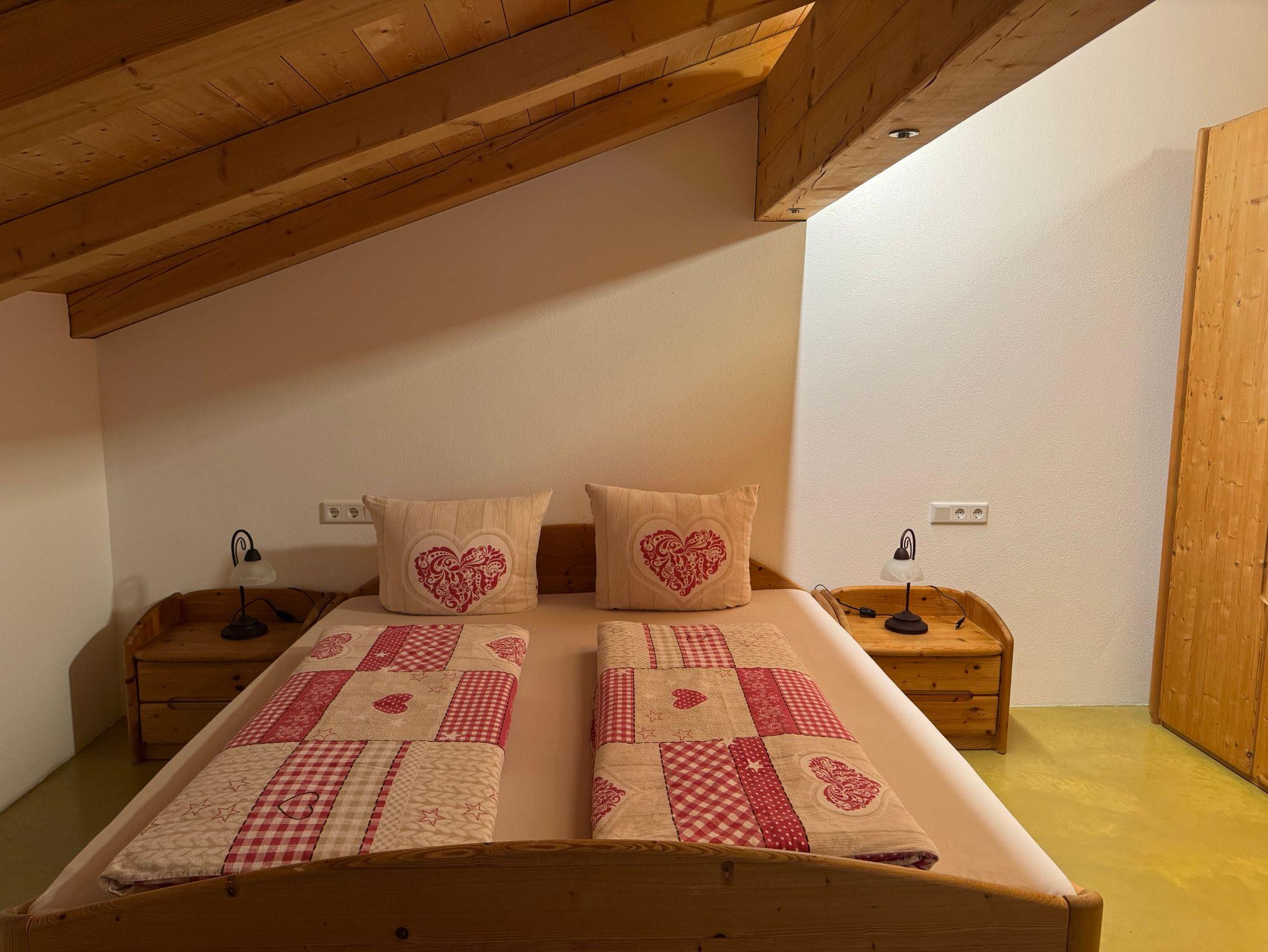 Die Ferienwohnung Bergblick begrüßt Sie in Kiefersfelden. Die Ferienwohnung liegt im 1. OG und 2:OG und verfügt über einen eigenen Treppenaufgang. Kostenfreies WLAN und Parkplätze an der Unterkunft, stehen unseren Gästen zur Verfügung. Die Unterkunft hat 2 Schlafzimmer: 1. Schlafzimmer mit Doppelbett 180 x 200 cm; 2. Schlafzimmer mit Doppelbett 180 x 200 cm und Hochbett 140 x 200 cm; Bad mit Dusche und WC; seperates WC; der Wohnraum ist mit einer Küchenzeile, Essplatz, Couch, sowie Flachbild - SAT TV ausgestattet. Eine große Dachterasse, direkt vor der Unterkunft ist mit einem Essplatz, Grill, Sonnenschirm und Sonnenliegen ausgestattet. Für Kinder stehen Brettspiele, Puzzle und Outdoorspiele zur Verfügung. Für unsere Gäste steht eine Waschmaschine und ein Wäschetrockner, gegen Gebühr, zur Verfügung.