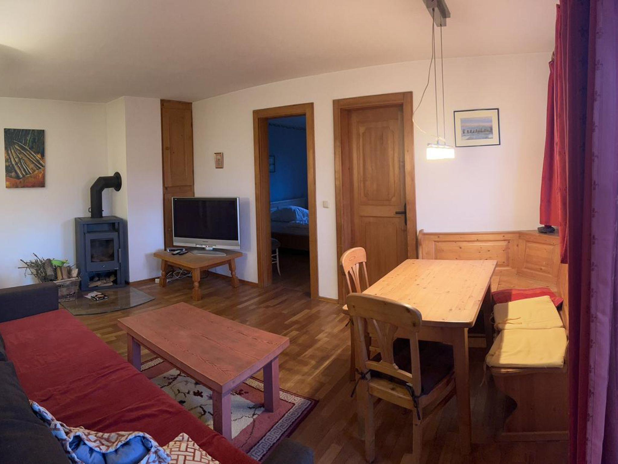 Unsere Ferienwohnung im 1. Stock umfasst ca. 50 m². Sie ist in zwei Schlafzimmer, ein Badezimmer und einen großen Wohn-Essbereich unterteilt. In der voll ausgestatteten Kochnische mit Herd, Spüle und Kühlschrank können Sie problemlos all Ihre Wunschgerichte zubereiten. Im Schlafzimmer befindet sich jeweils ein Doppelbett. Im Wohn-Essbereich können Sie an lauen Herbst und Winterabenden den Tag vor dem Flachbildfernseher neben dem Holzofen ausklingen lassen. Vom Balkon aus können Sie den Blick auf den See und das umliegende Bergpanorama genießen. Gerne können Sie auch Ihre Haustiere mitbringen.
