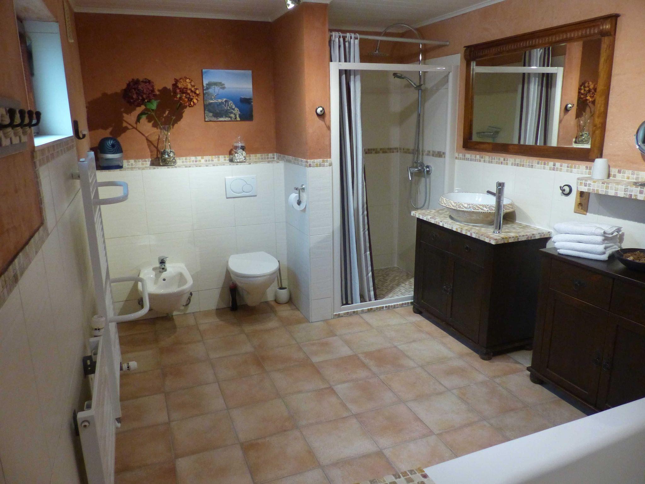 Das Haus verfügt über ein großes, exclusives neues (ca 12qm) Bad mit Wellnessdusche, sowie ein 2. Gäste-WC.
