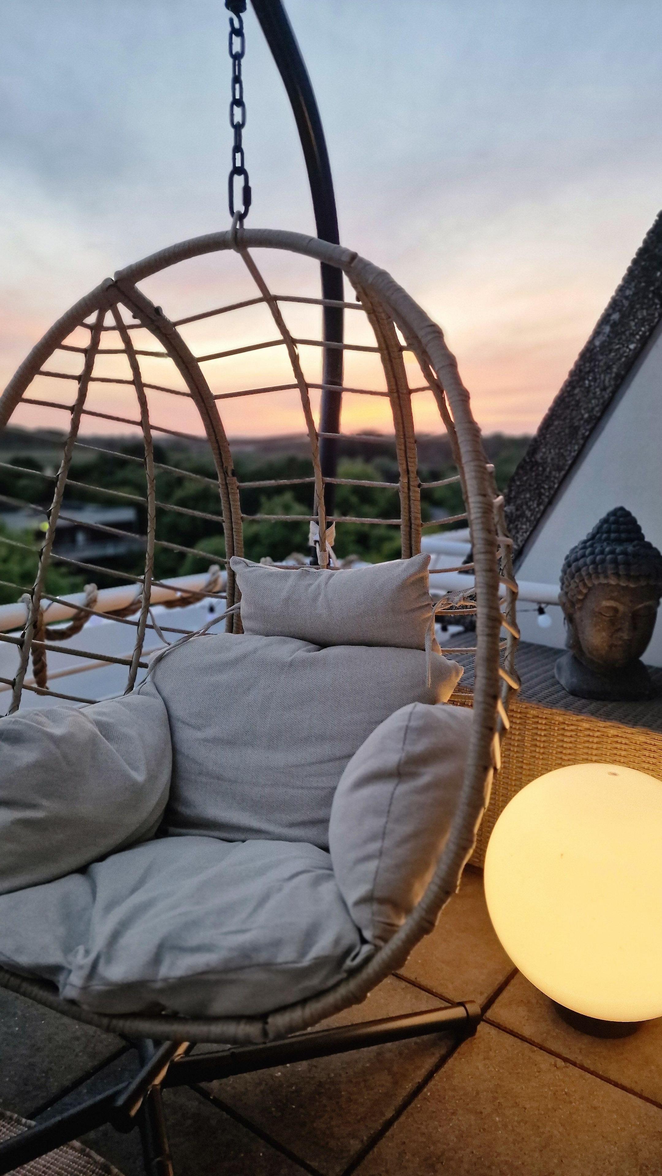 Das Apartment befindet sich im dritten Stock, garantiert dem Gast Ruhe und einen unverbaubaren Blick über Felder und den Fuhlsee. Durch die große Fensterfront wirkt das Apartment besonders hell und freundlich .