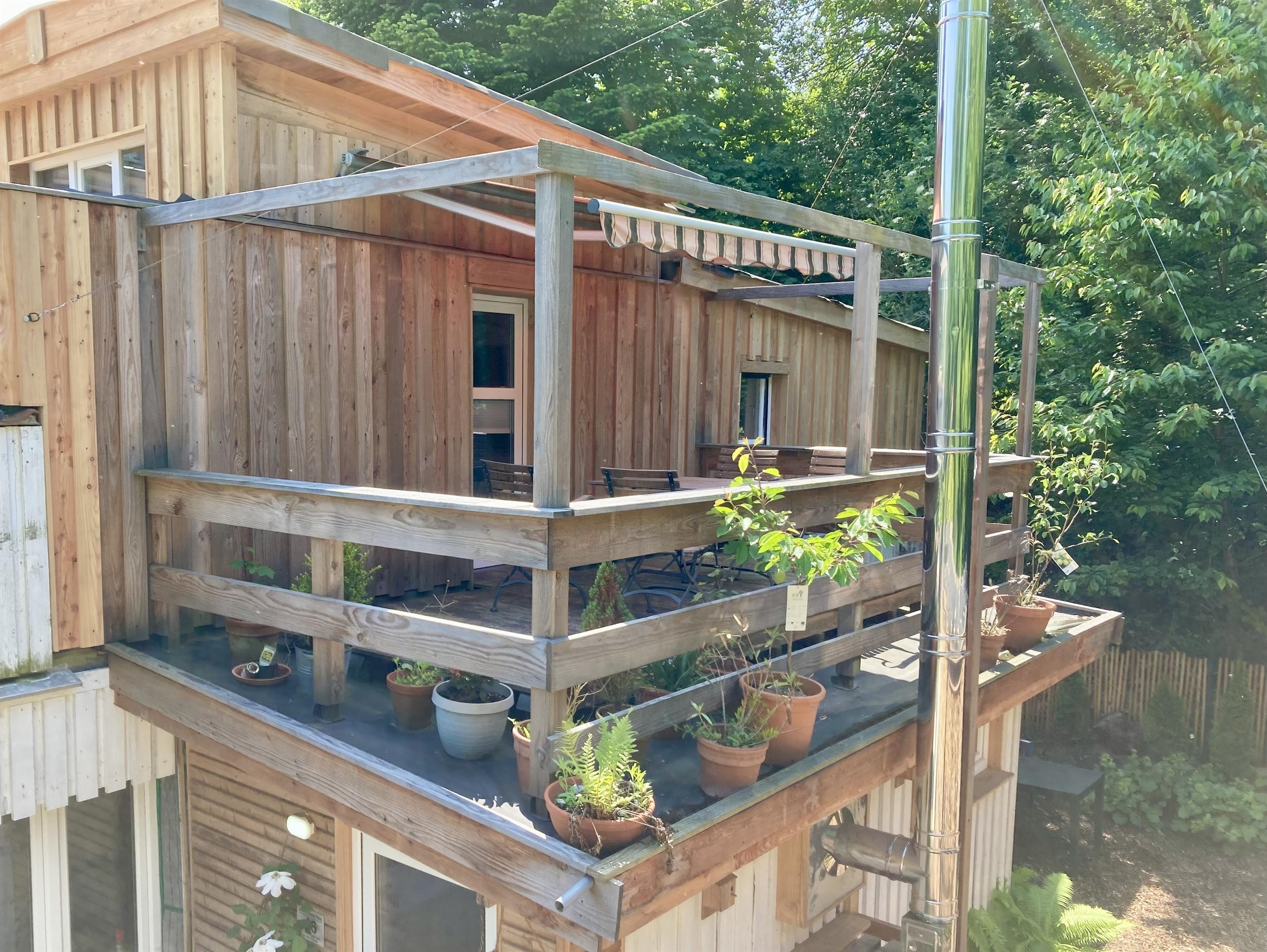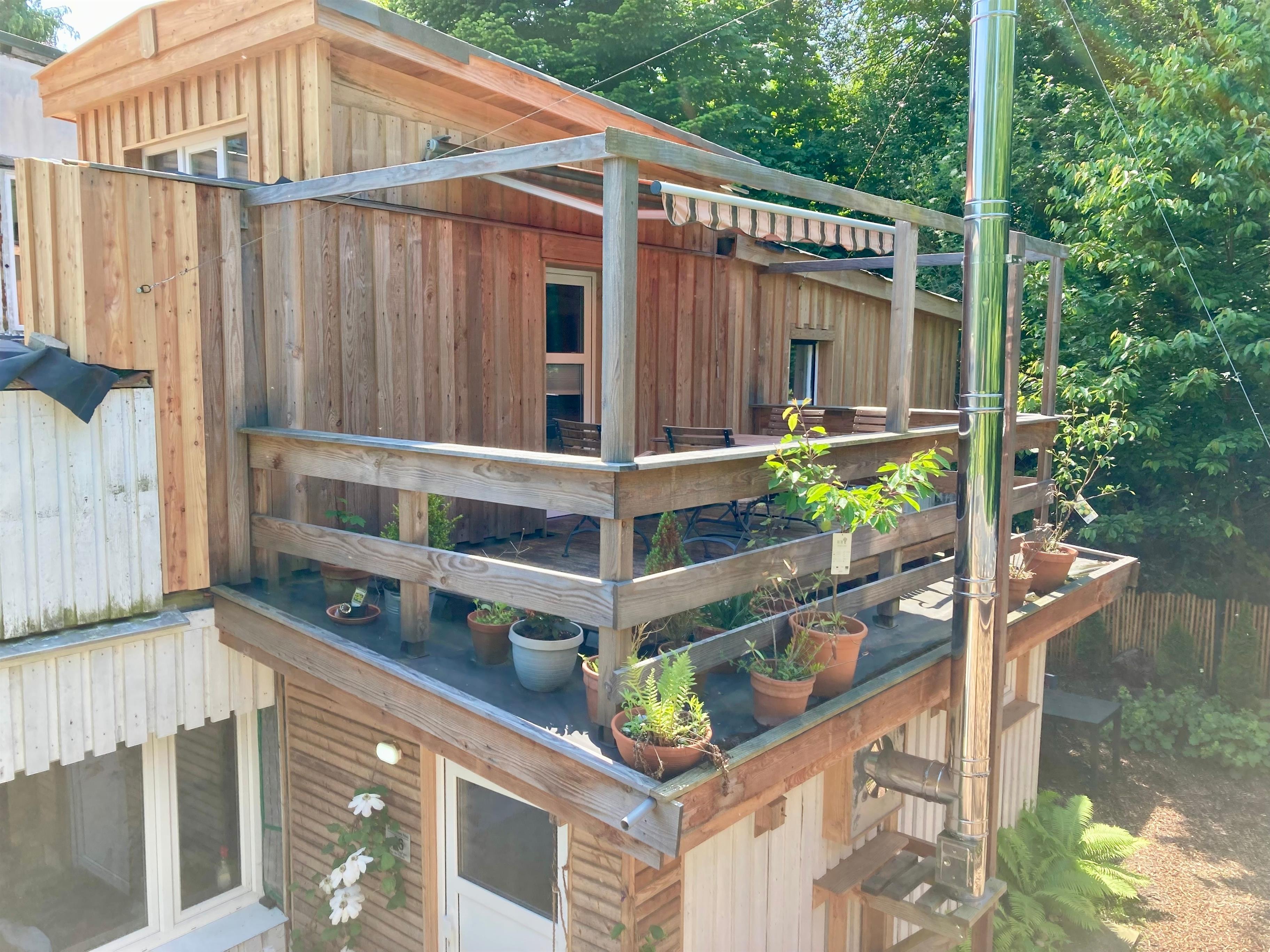 Eine 2. Dachterrasse mit 15m² geht vom großen Wohnzimmer im OG ab.