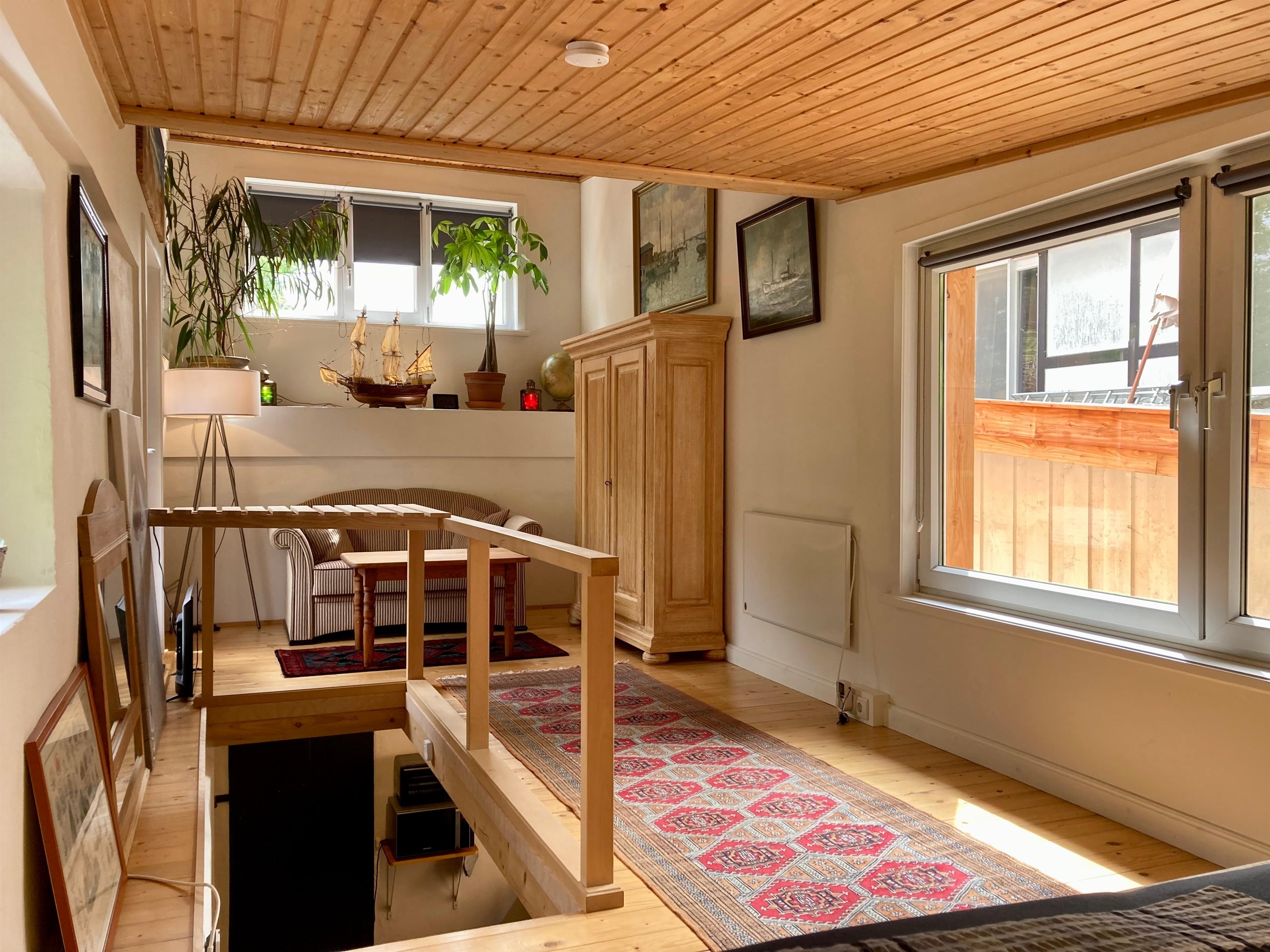 Ein 2. Zimmer kann auch als Schlaf-/Arbeits-/Wohnzimmer genutzt werden. Badezimmer ca. 7 m² mit Duschbad und Badewanne. Eine kleine Küche mit Ceranherd, Ofen, Grill