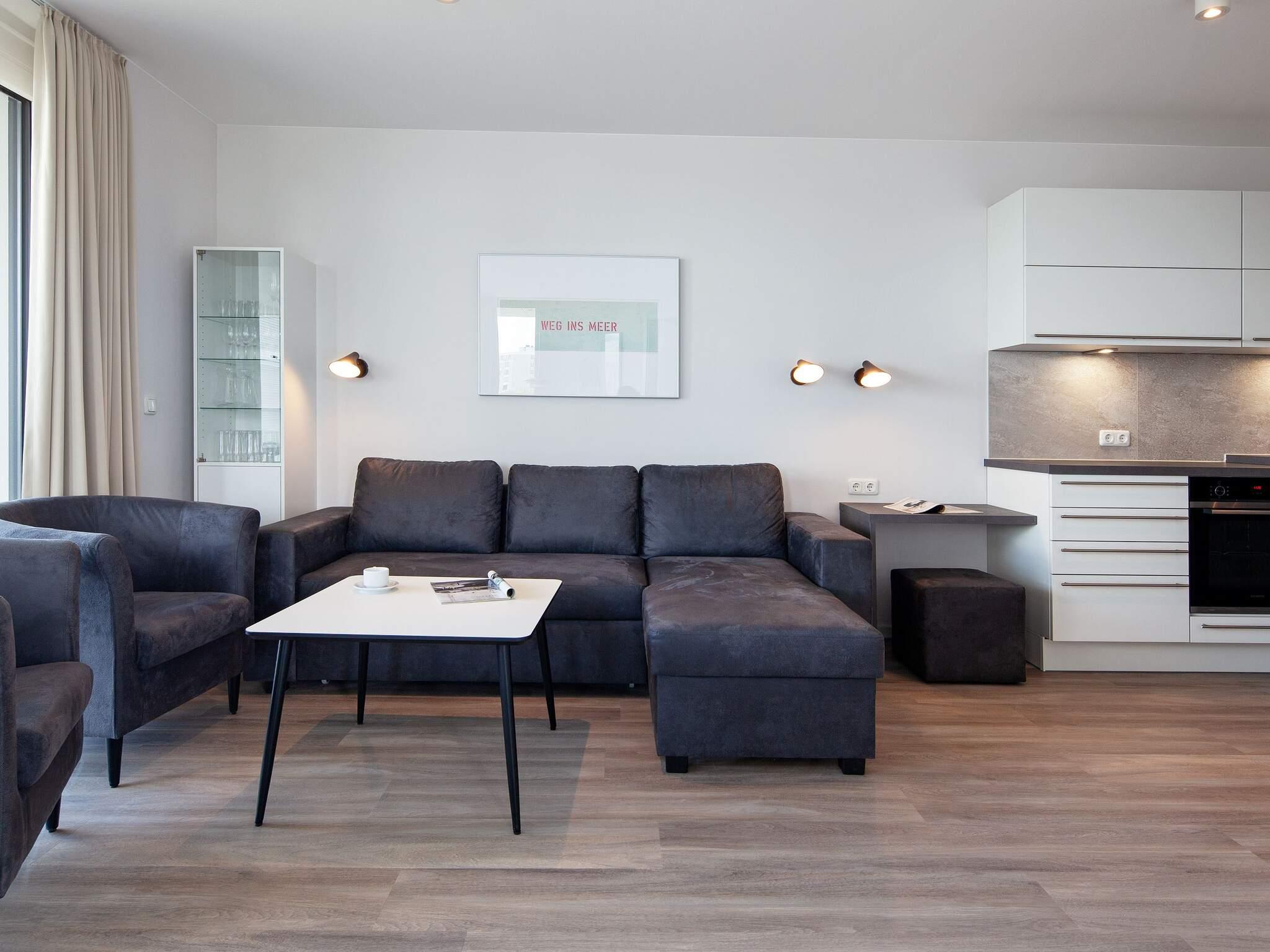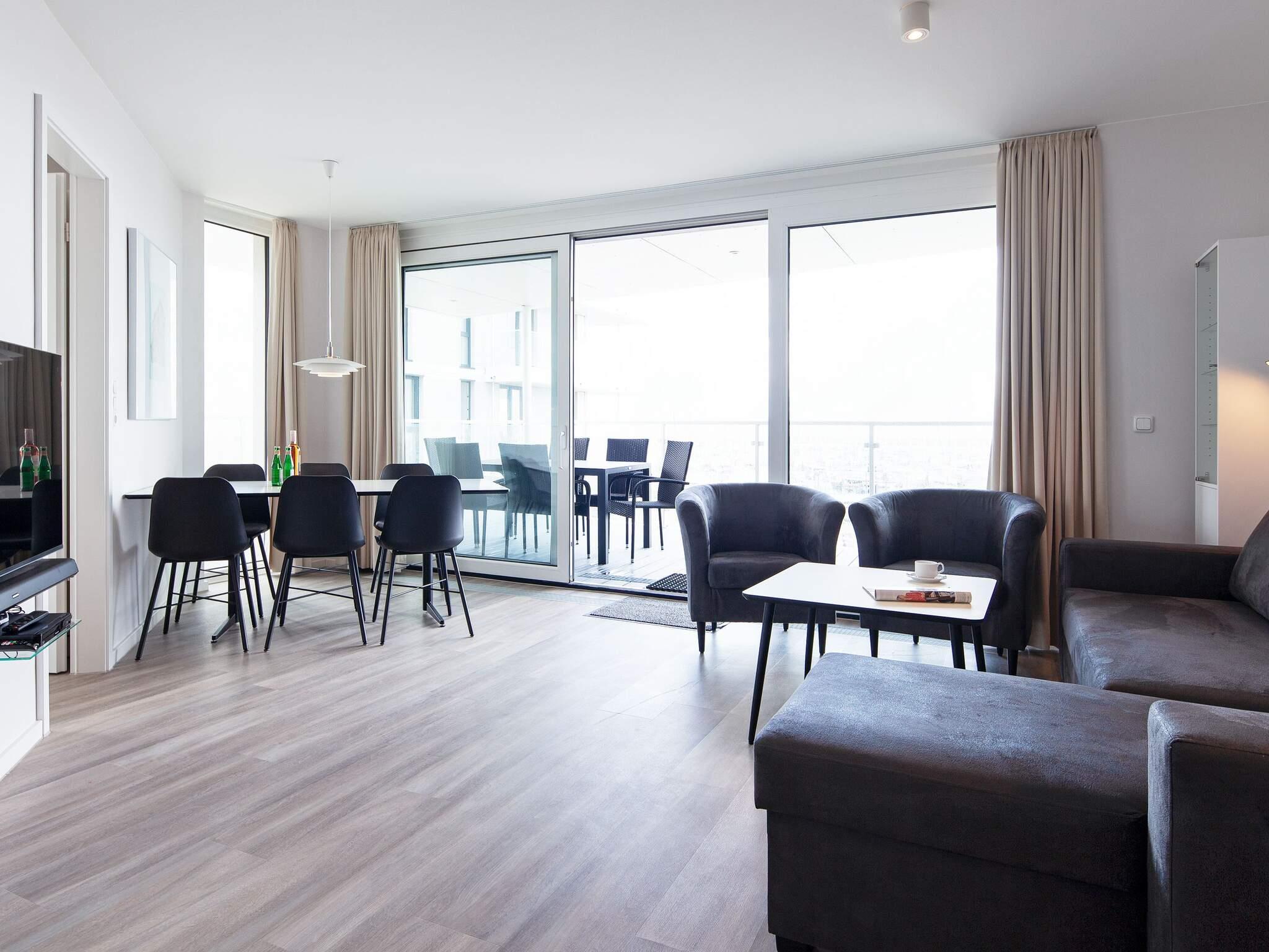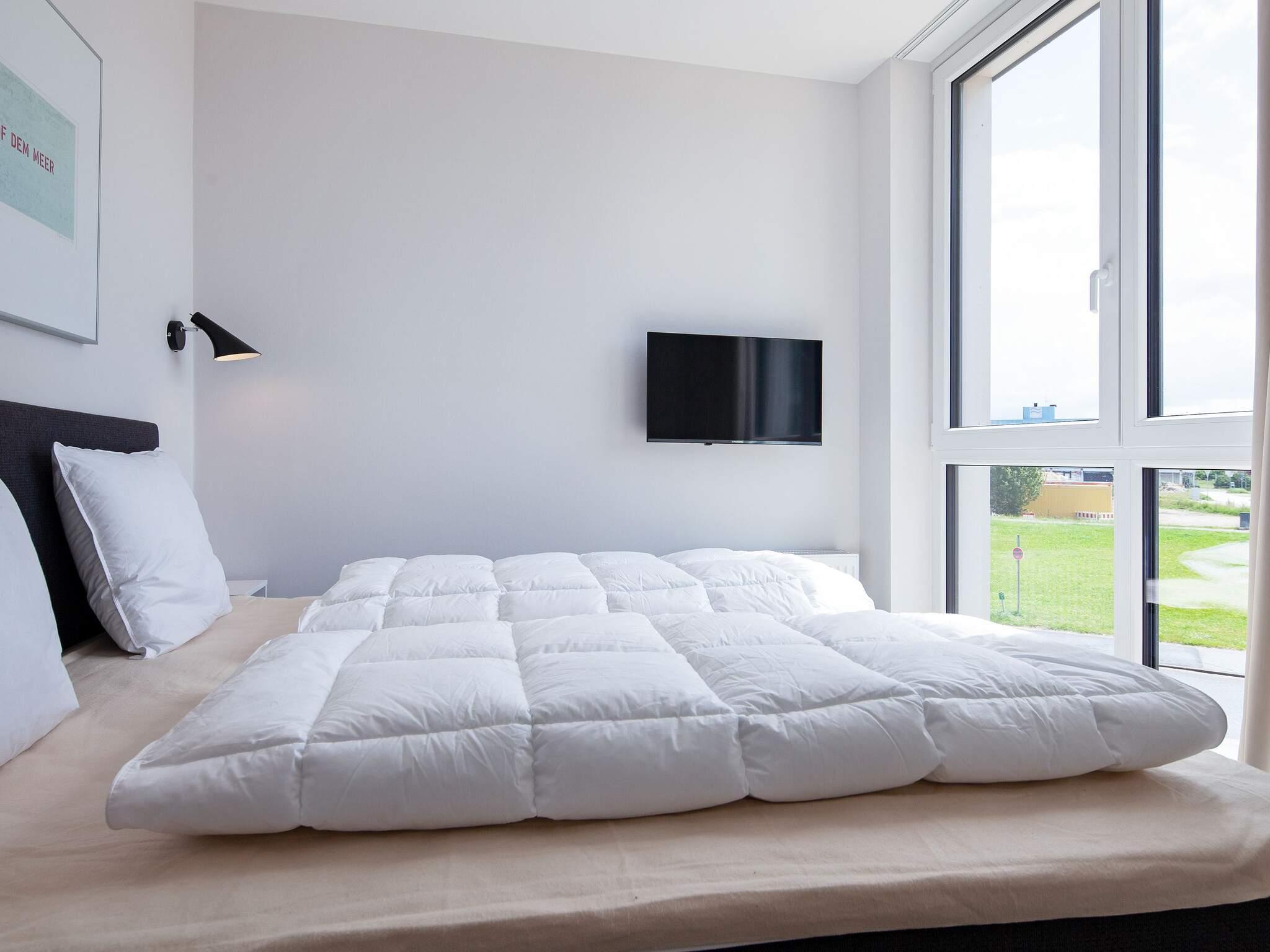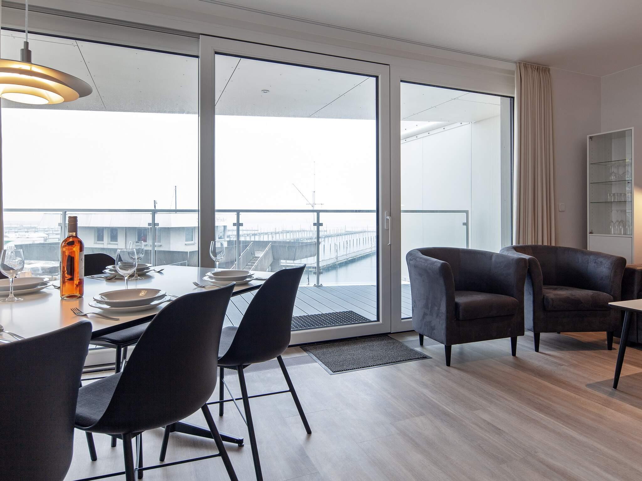 Moderne og komfortabel lejlighed med udsigt over Østersøen og lystbådehavnen. Nyd den smukke panoramaudsigt over Østersøen fra morgen til aften. Den moderne og komfortabelt indrettede lejlighed består af et åbent køkken-opholdsstue med spiseplads og udgang til den store altan/terrasse. Derudover er der et badeværelse med regnbruser med dampbadfunktion og gulvvarme. Et tv med Blu-Ray-afspiller og en soundbar med Bluetooth-forbindelse sørger for underholdning, og en bioethanolpejs giver hyggelig varme. Der er i alt tre soveværelser, hver med en dobbeltseng og et fladskærms-tv.